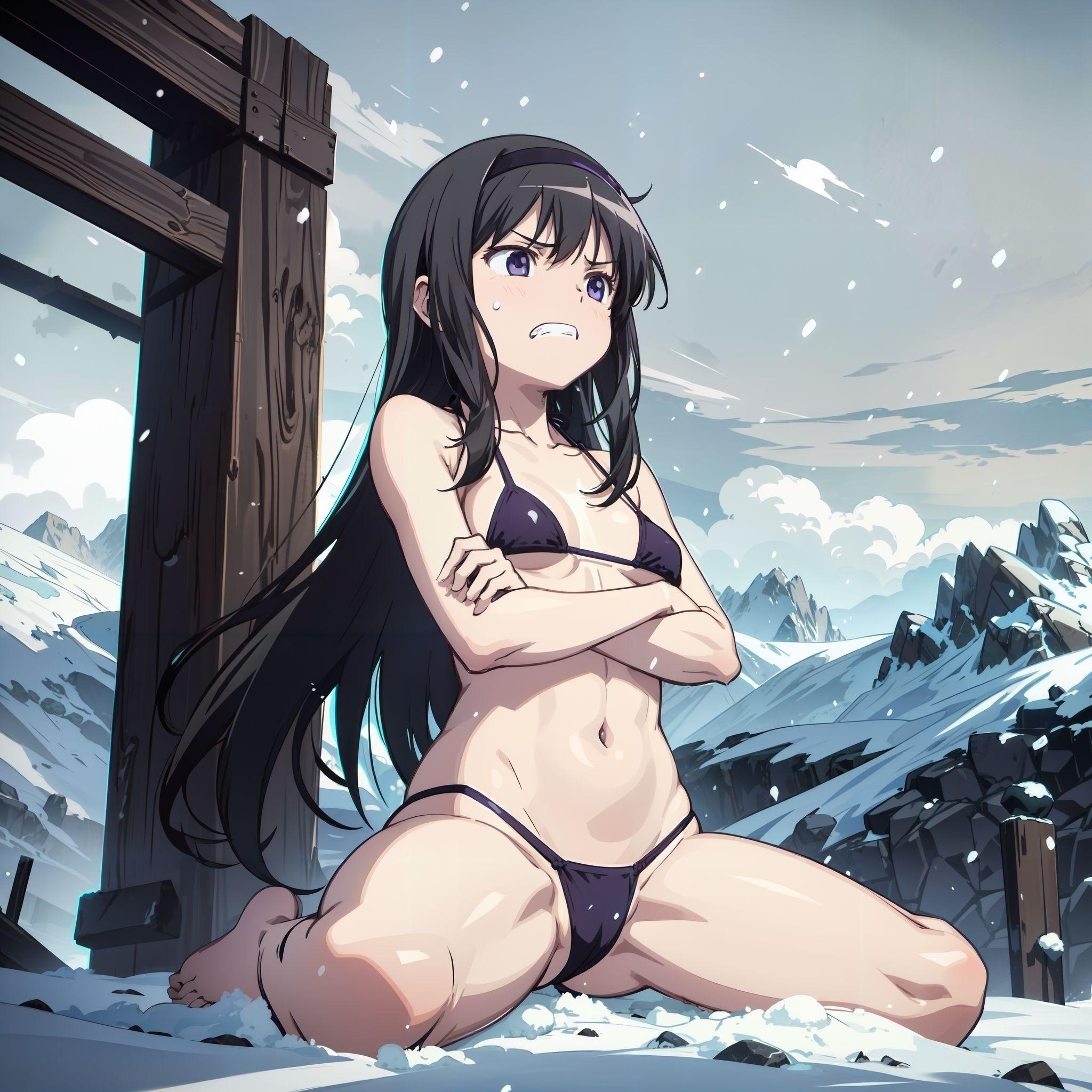 ビキニ姿のほむほむが雪山で寒さに耐えるイラスト
