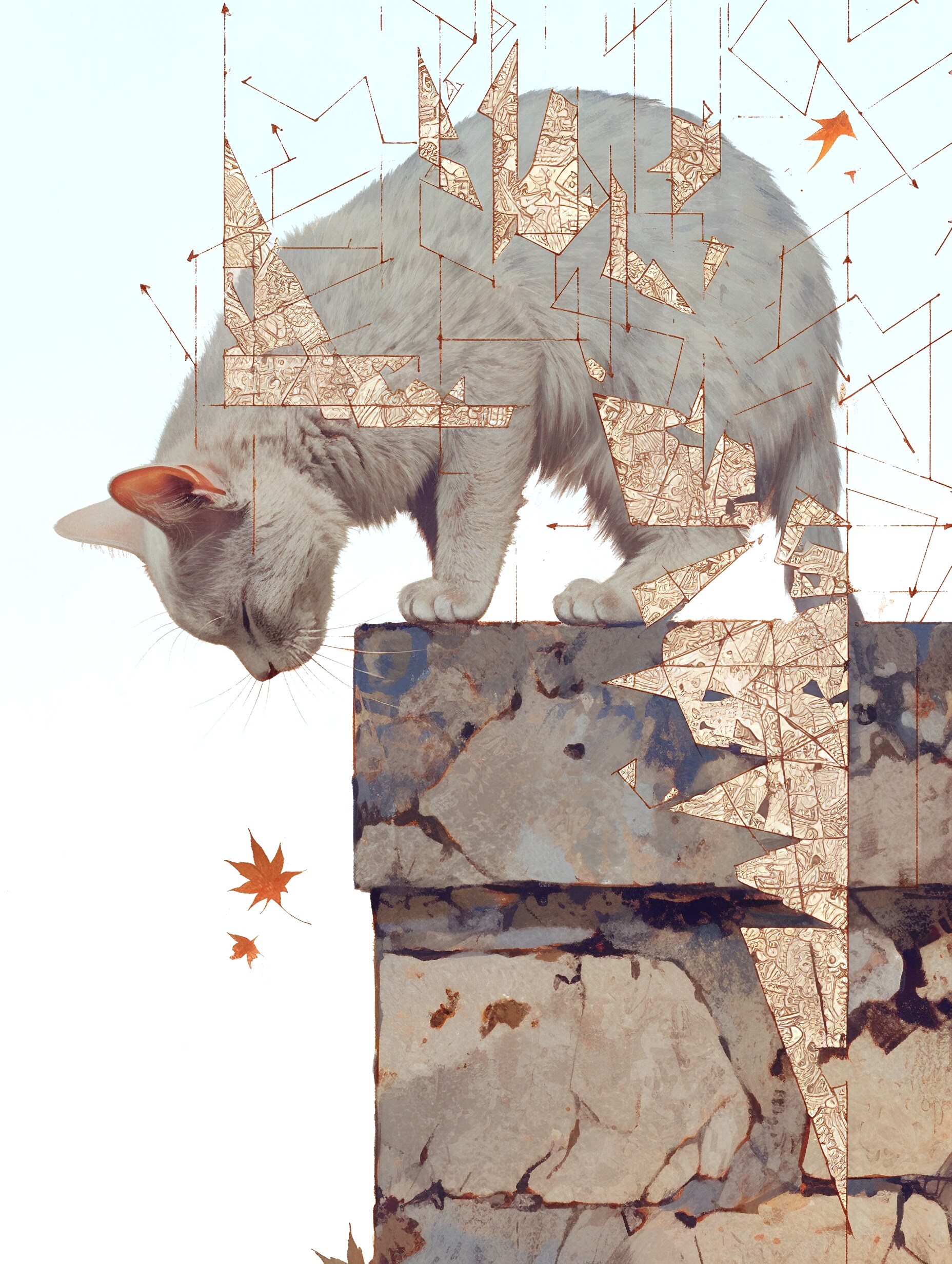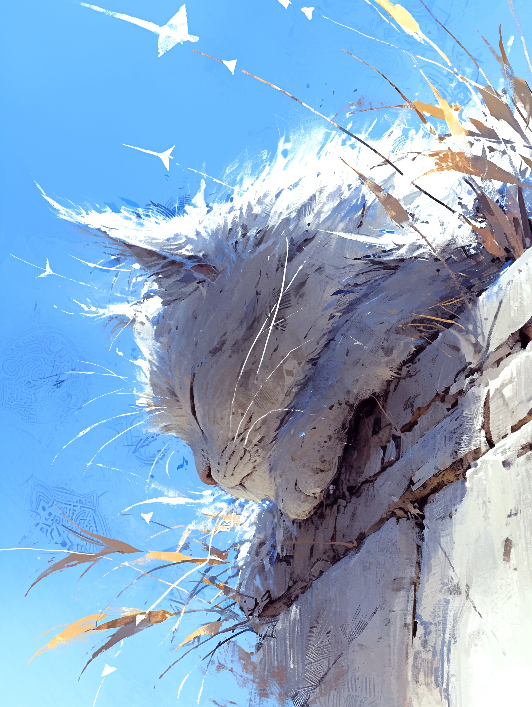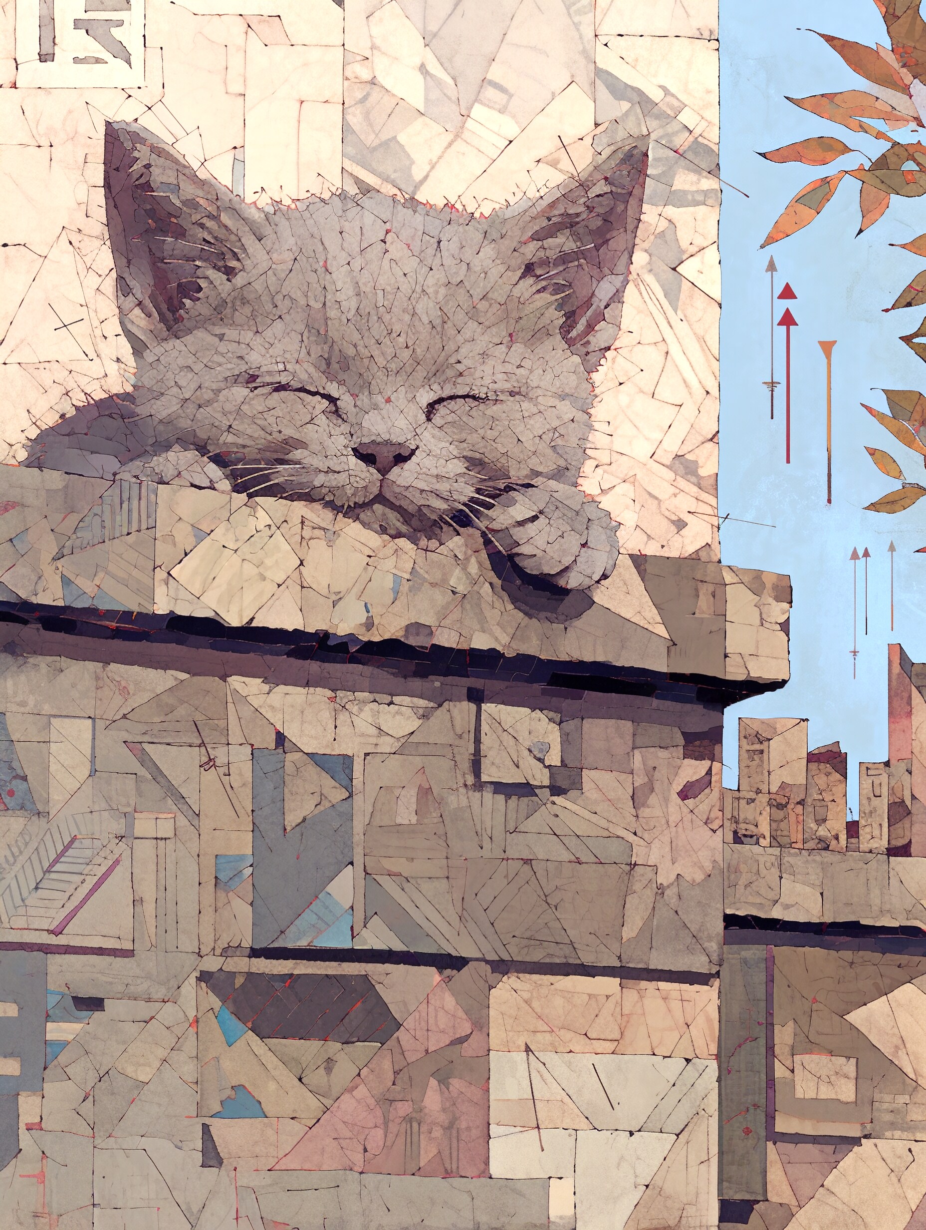 そのときの、風に流されて幅広になった秋空の飛行機雲と猫が絵になる構図だったのですが、写真を撮り忘れたので2枚目はフォトっぽくしました☺︎