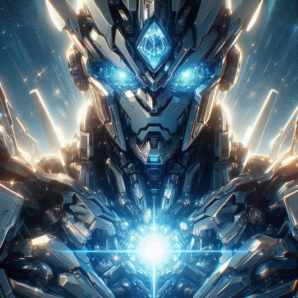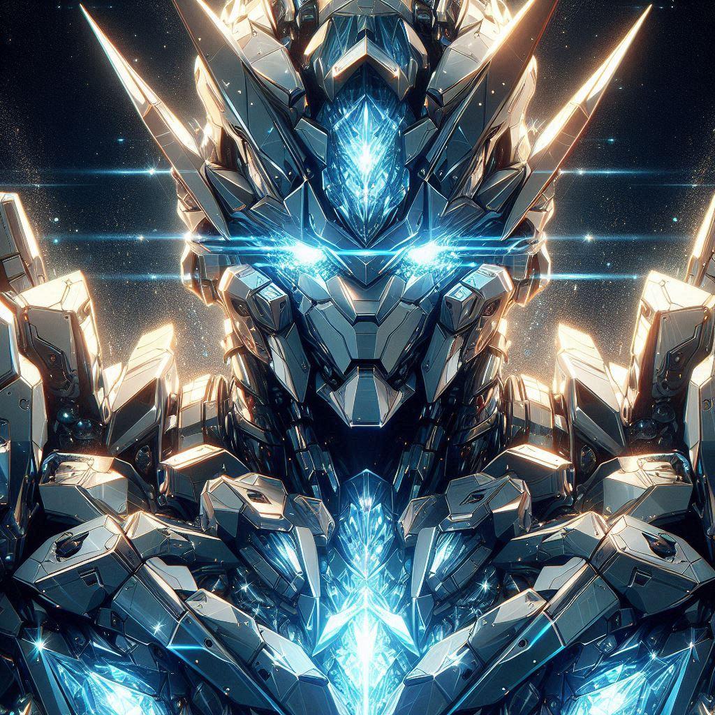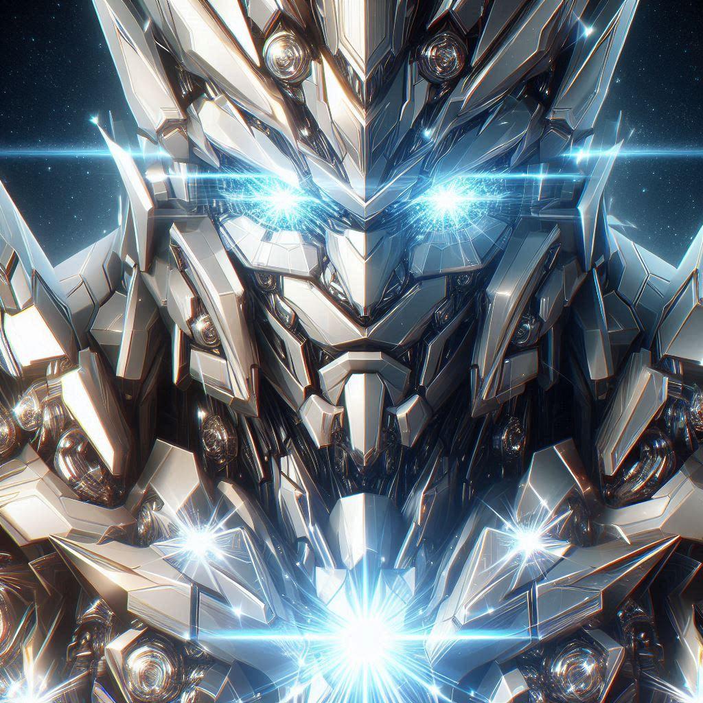ロボアニメ好きなら幾度となく見たであろう?、主人公とかのピンチの時に瞳を光らせ起動する主人公サイドのヒーローメカです!その瞳の光をキラキラの”宝石みたい”にってAIちゃんにお頼みした次第ですww。
