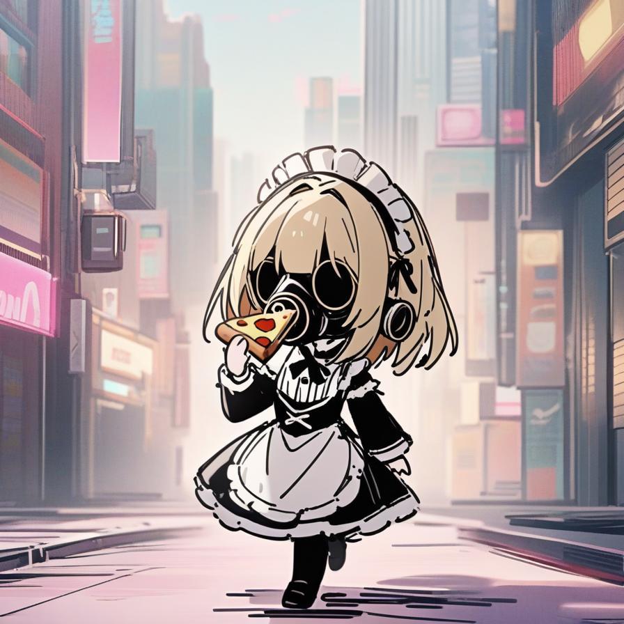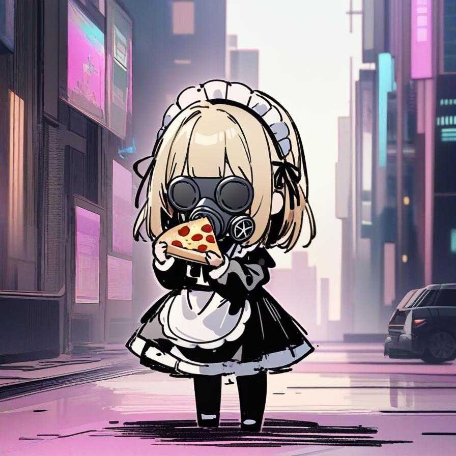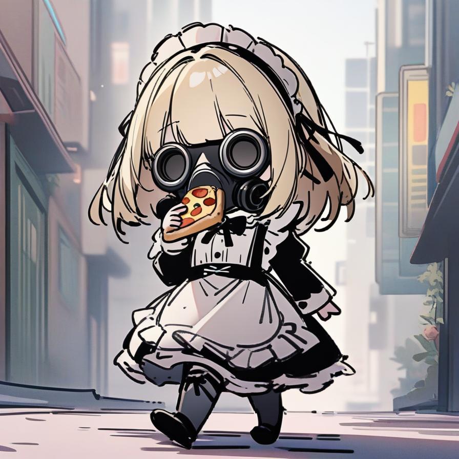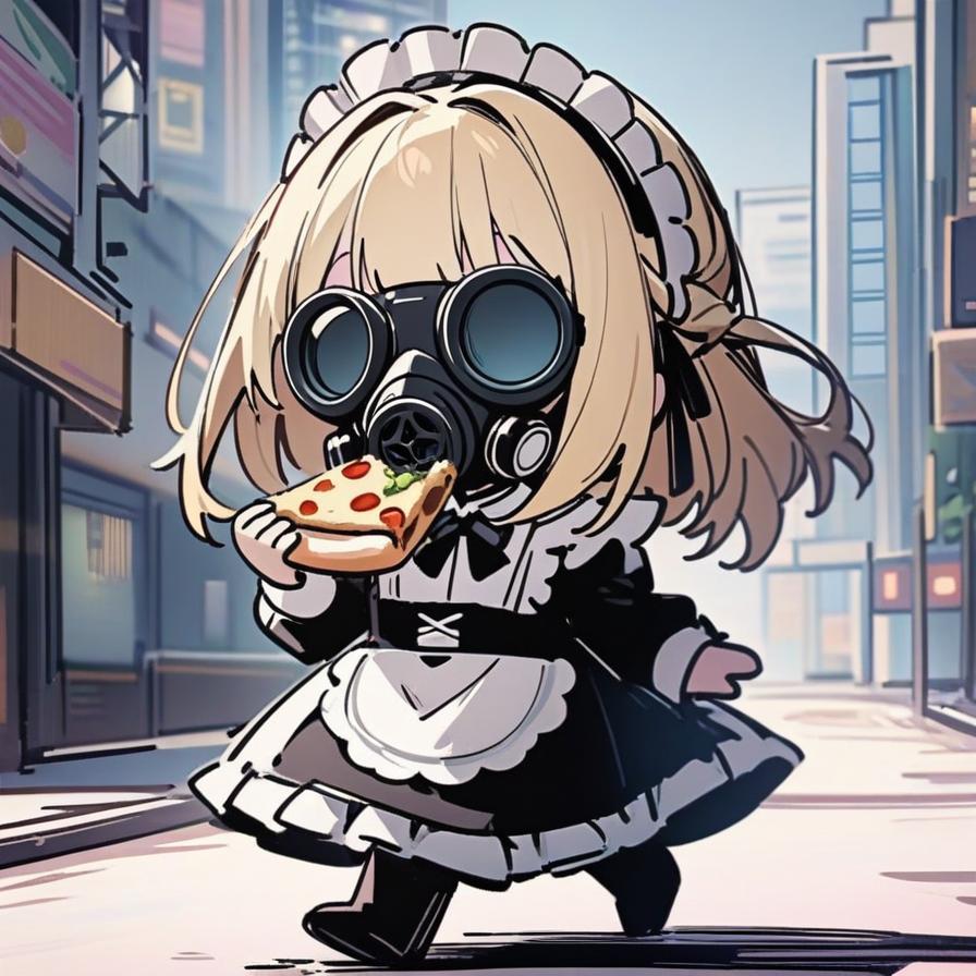 花粉対策万全で外出するも、おピッツァがもぐもぐできないことに気付いちゃった系メイドちゃん