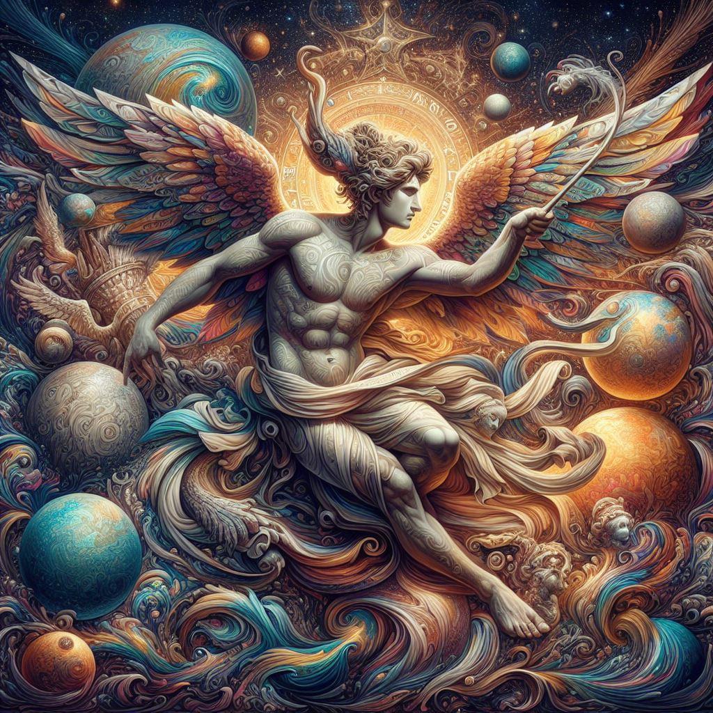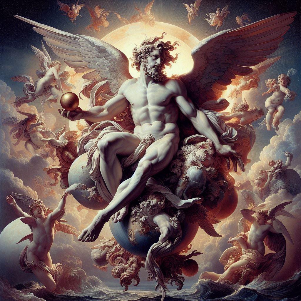 プロンプトで「神(男性)」と書いているのに女性の絵が混じっているのは、この神様は神話でも占星術でも両性具有者(ふたなり)として認識されていることに基づくものでしょうか。