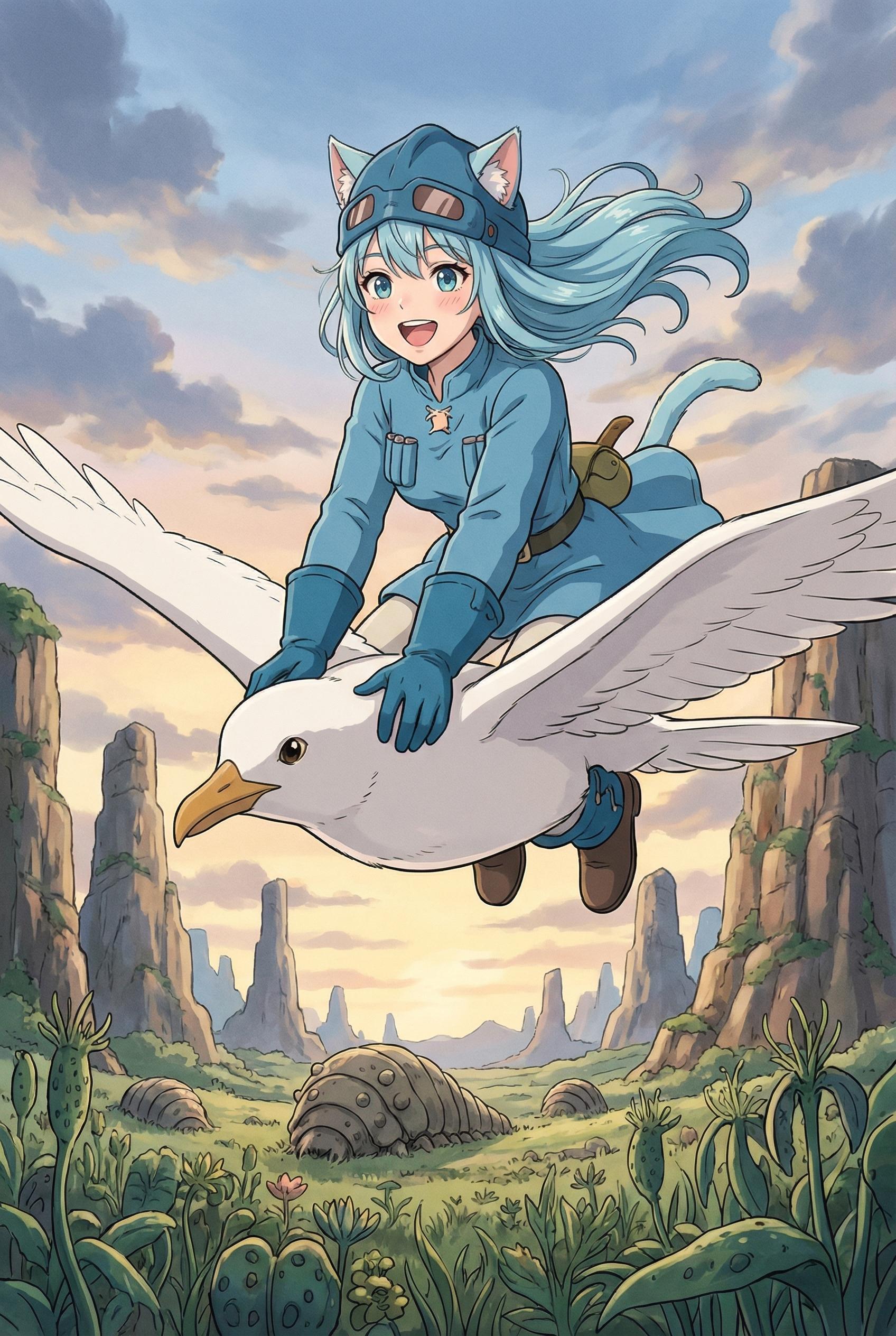 ②Seedreamで生成した元画。「メーヴェ」が謎の乗り物になった以外は優秀ですね😲
