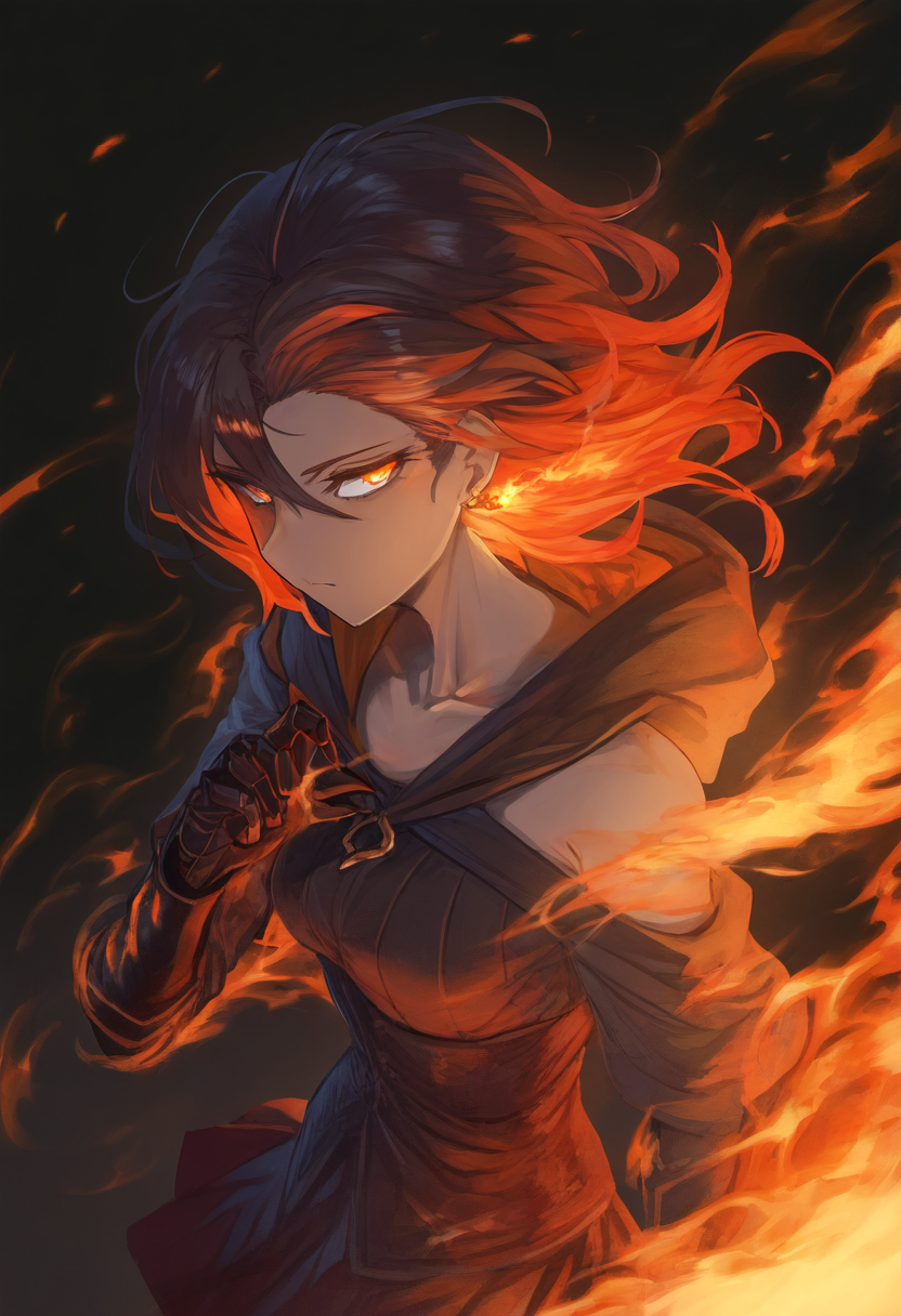 このイラストですが、闇の世界に行ってしまったというイメージで帯びている雰囲気も明るい紅と白(※)ではなく暗い空間とそれを不穏に照らす炎という形にしてみました。基本属性が雷と宝石とのことなので石炭みたいで闇堕ちという雰囲気になってればいいなと思います。
