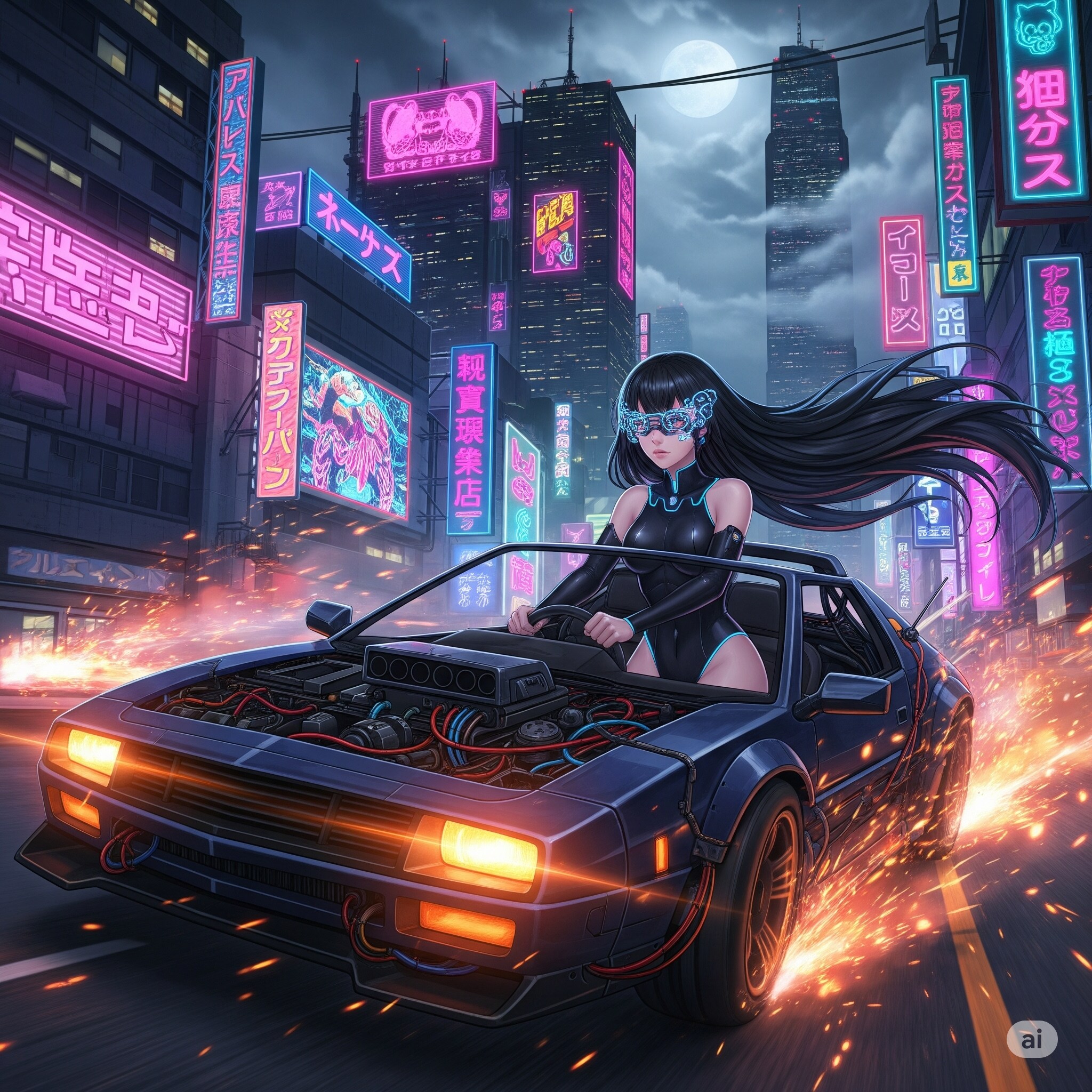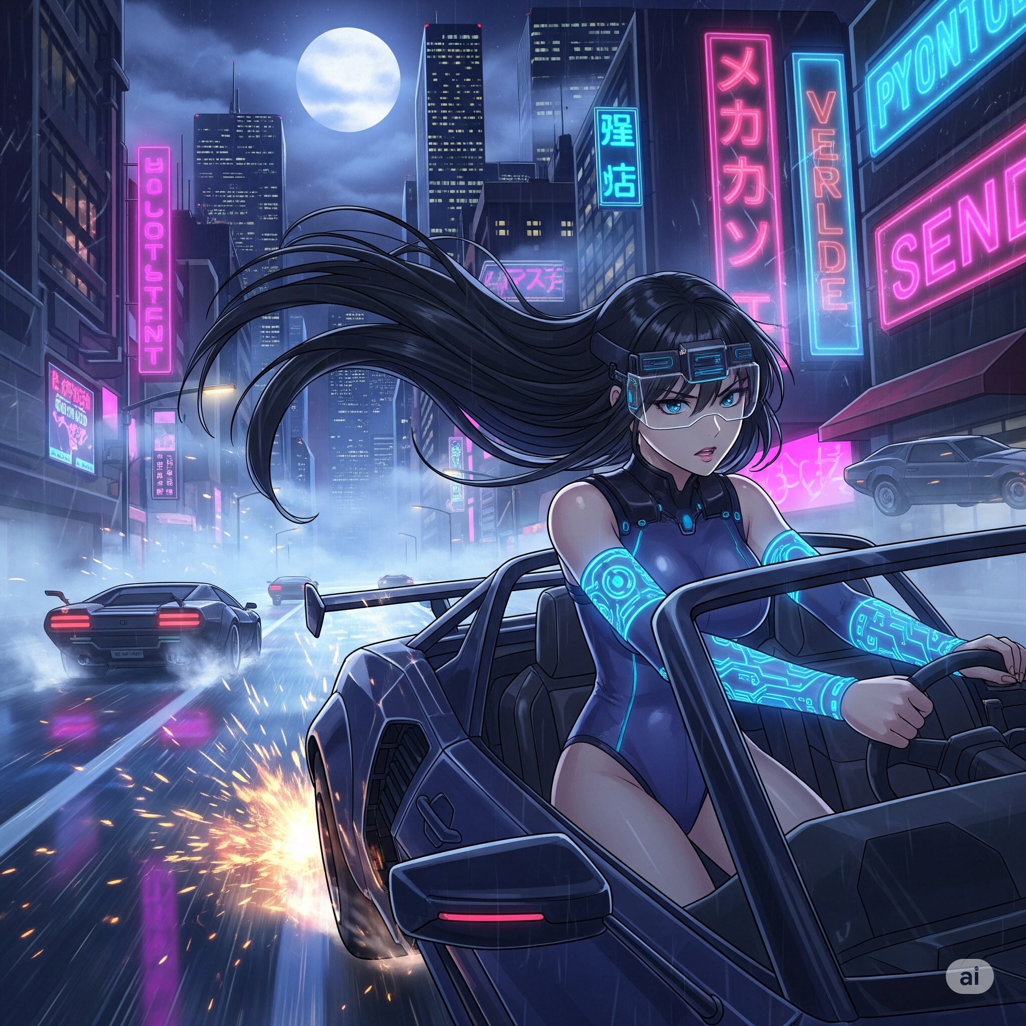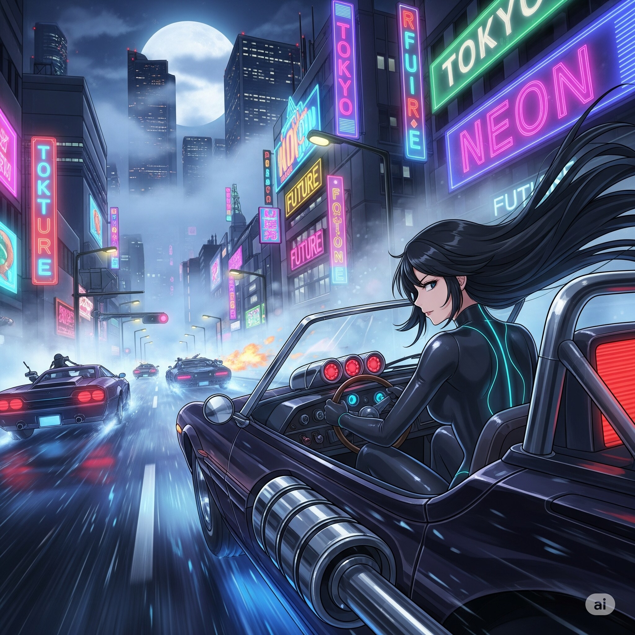 サイバーパンク世界のカーチェイス