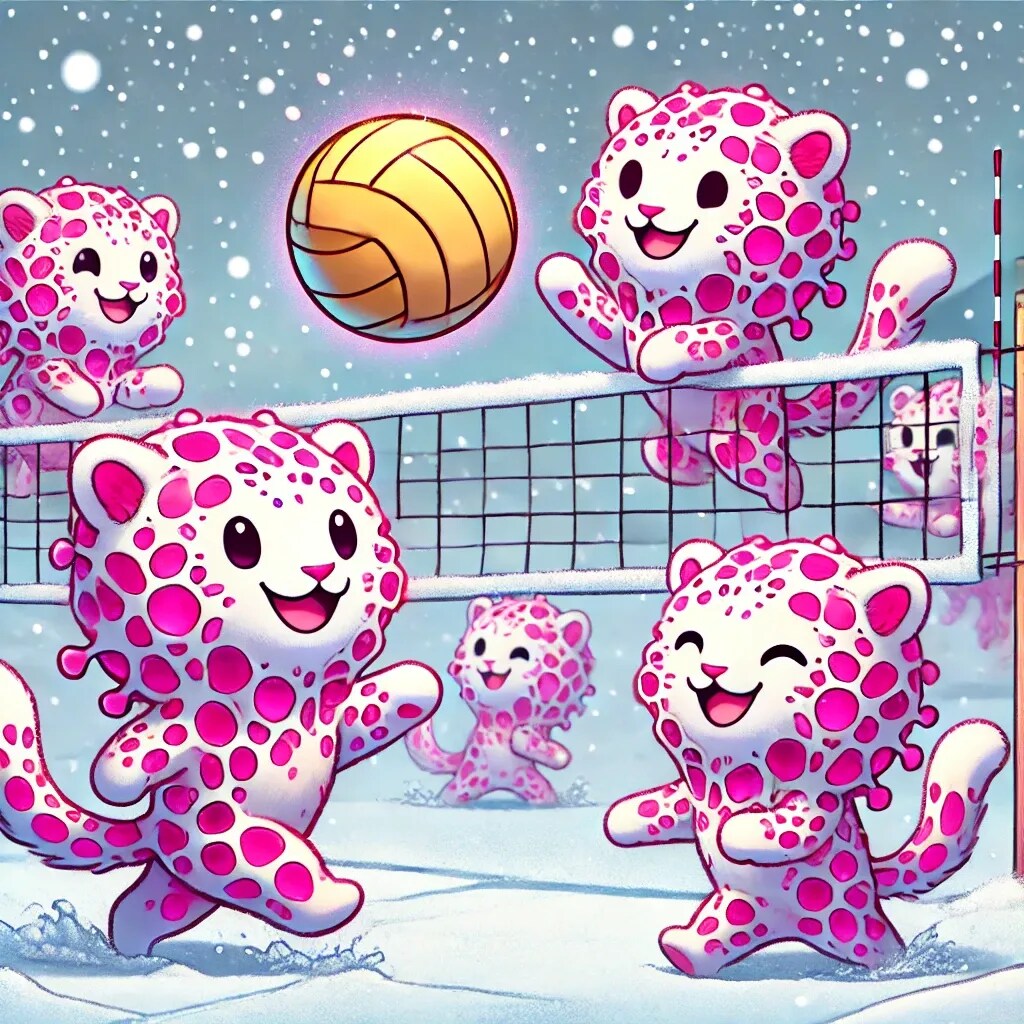 **ビーチバレーの雪上版「スノーバレー」**は、ユキヒョウたちにとって最高の競技フィールドになりそうです!🐆⛄