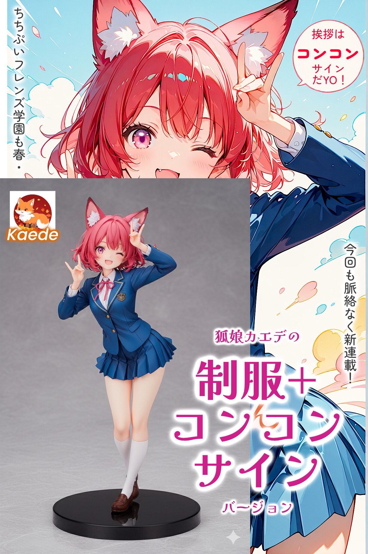 ●8枚目:カエデのJK制服+コンコンサインバージョン。元作品はboleromix製の漫画作品です。