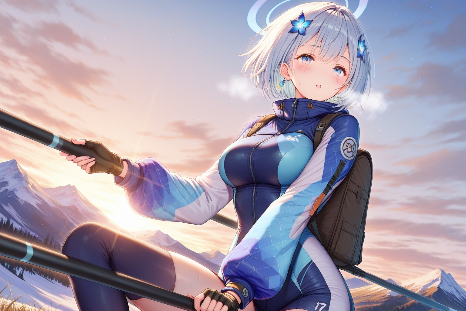 「山頂の夜明け直前」って指定をしてたんですが(scenery near the summit before dawn の部分)、ほぼ日の出の瞬間に