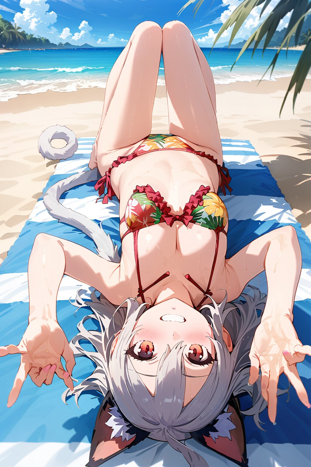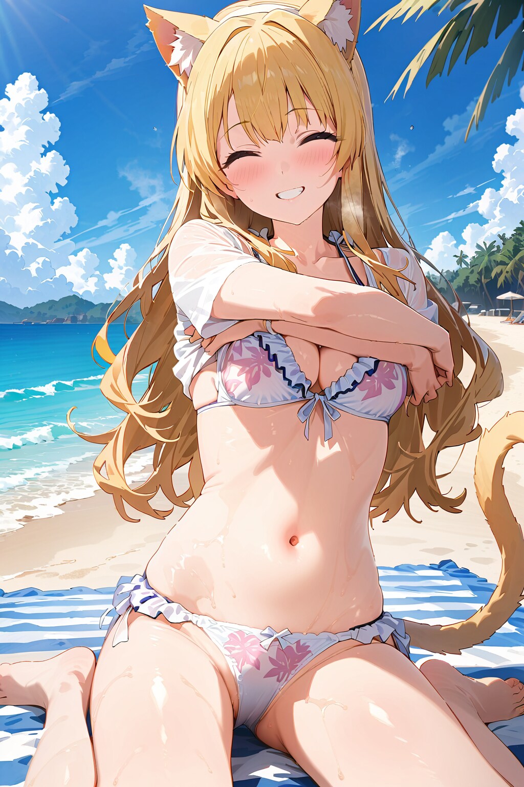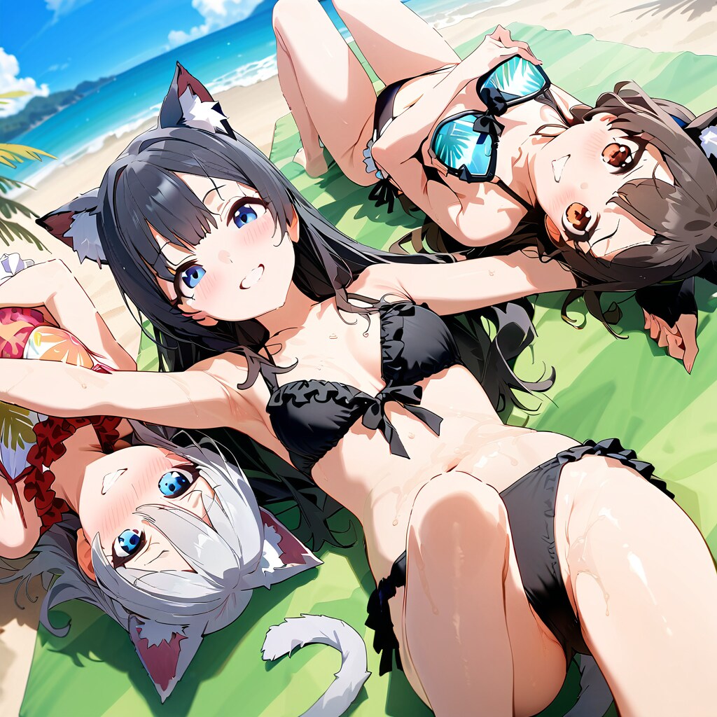 「……水着だぞ。なーにしせんそらしてんだよぉ」金髪のニアがTシャツを脱ぎ去りながらにやにや笑う。