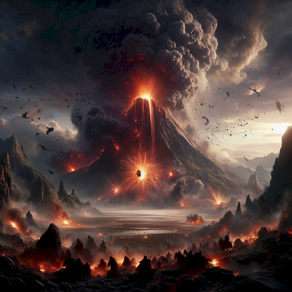 誰かが叫ぶ。山の上で突如として閃光が走り、山腹が弾け飛ぶ。真っ赤な光が山の斜面を照らし、瞬く間に暗い空へと広がった。