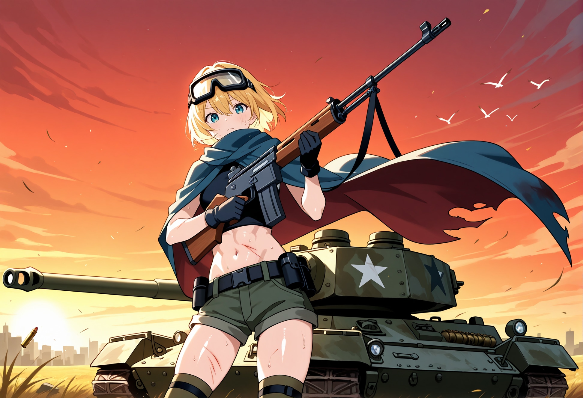 荒れ果てた終末の大地に、少女の駆るティーガーT戦車の轟音が響く。静寂を切り裂くように、彼女は戦場を進む