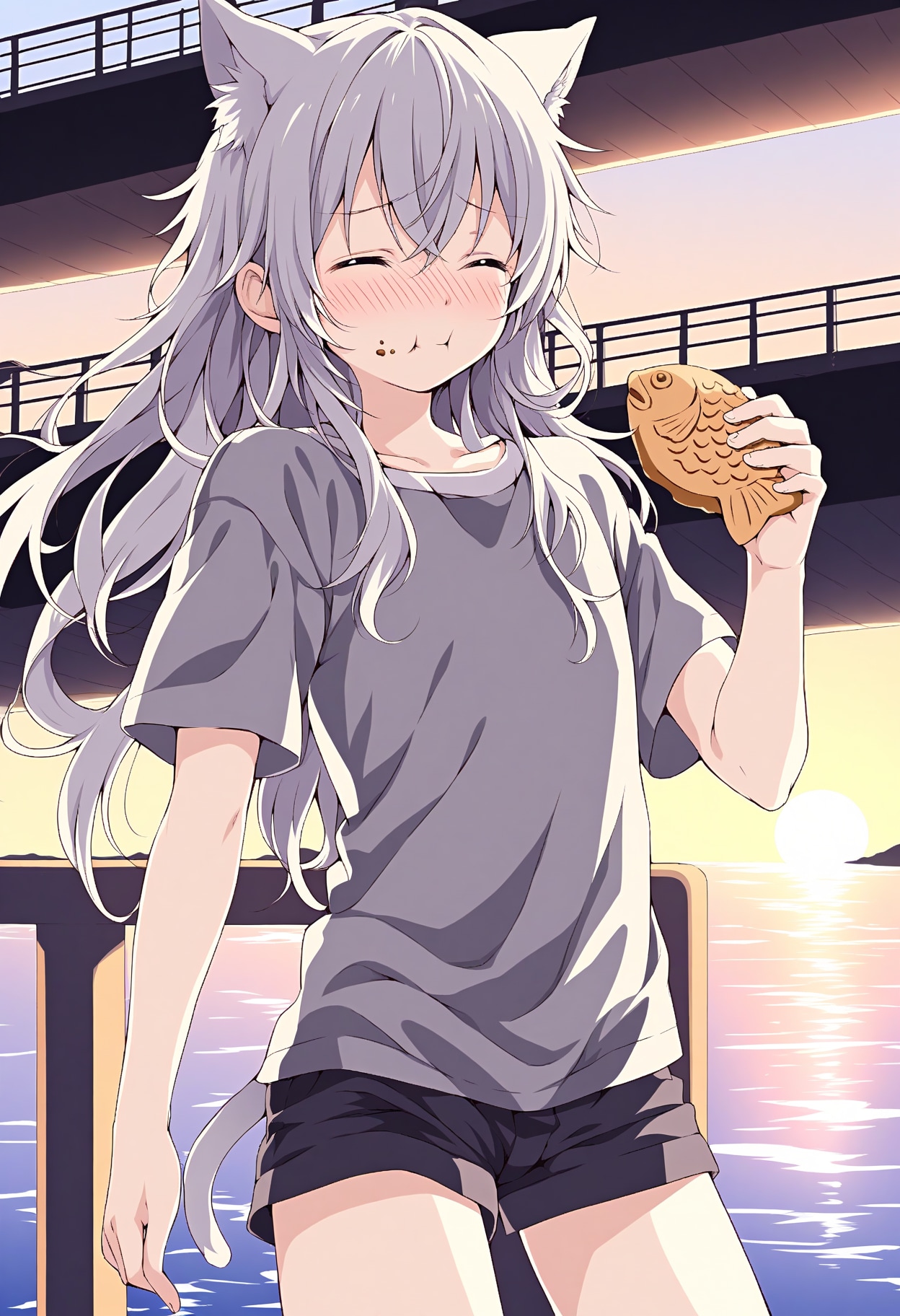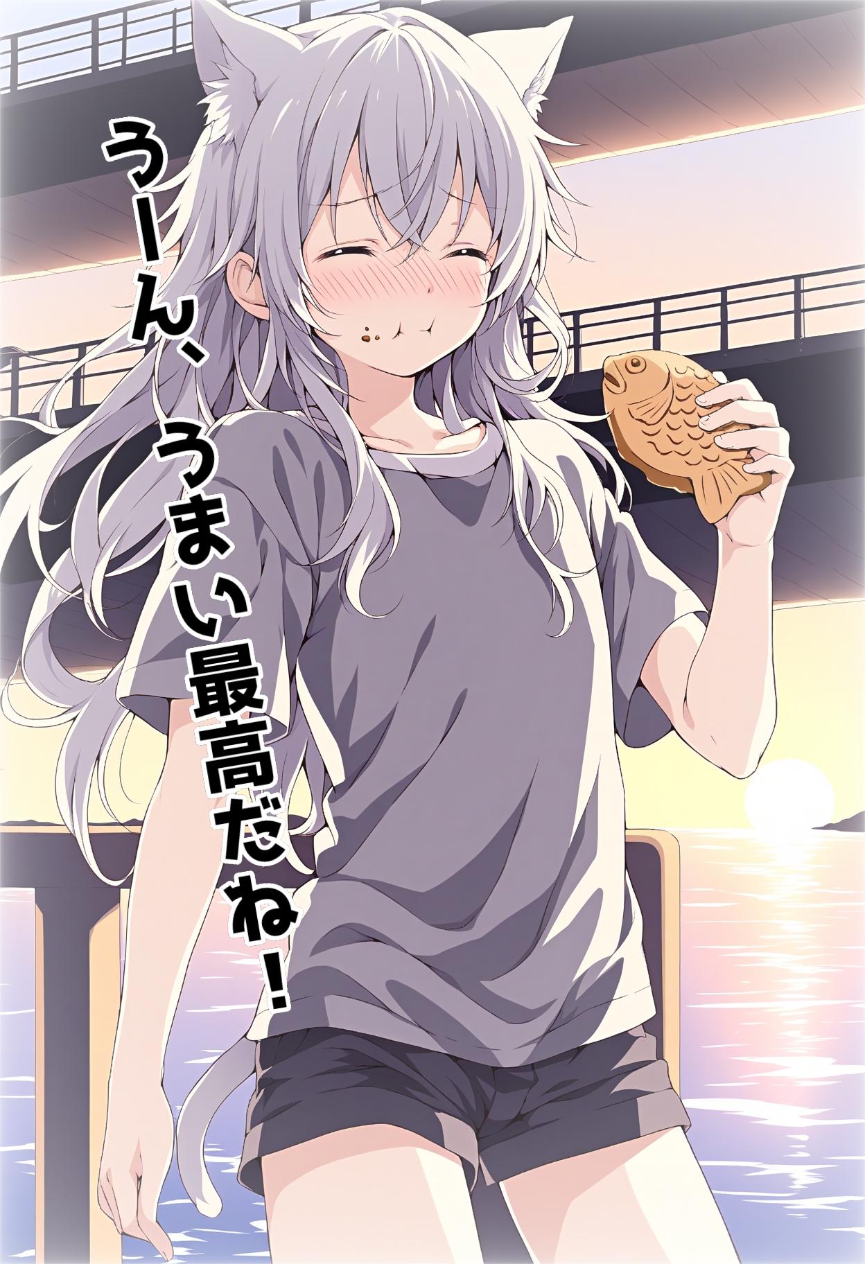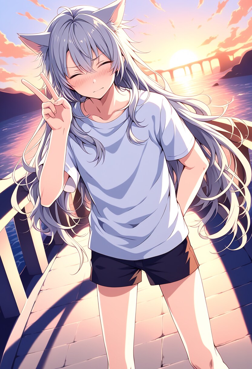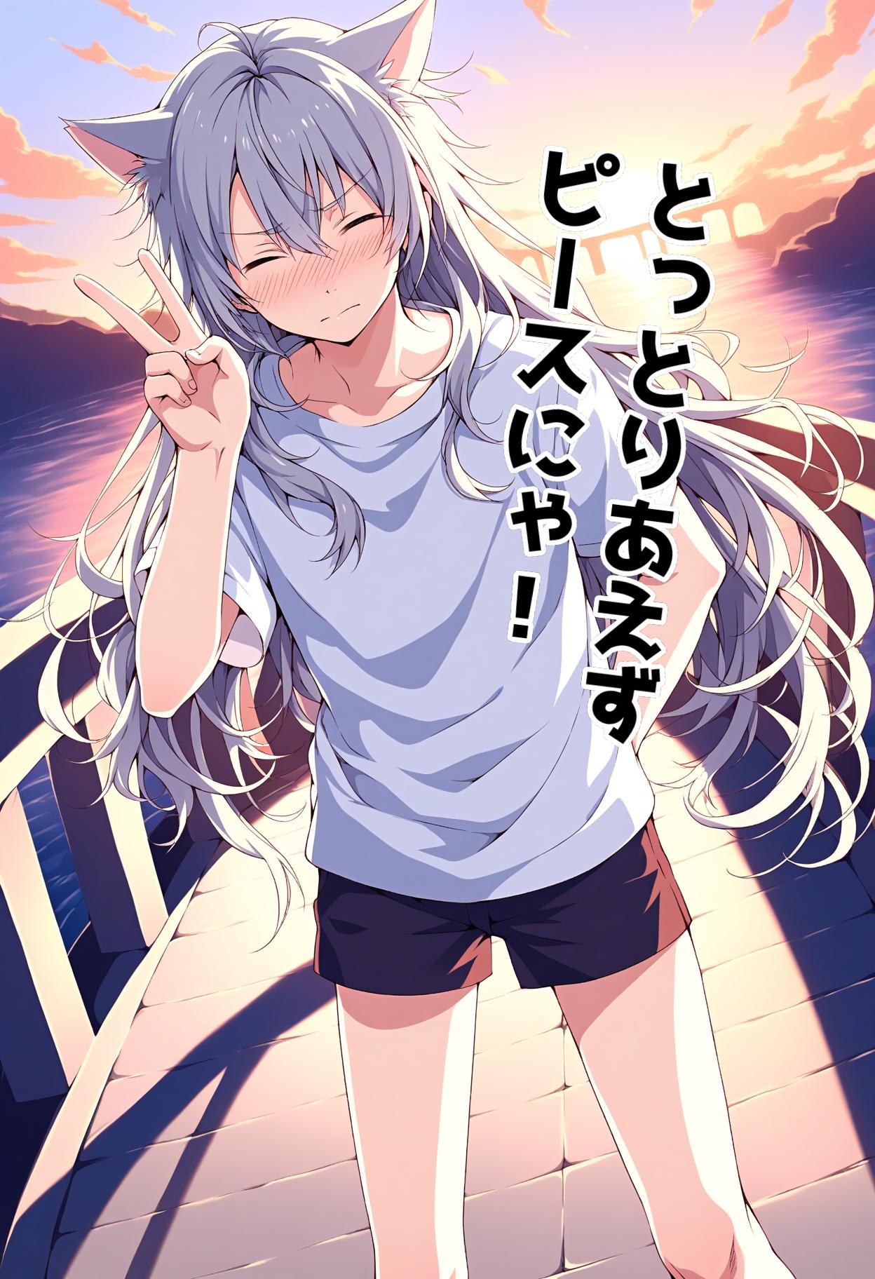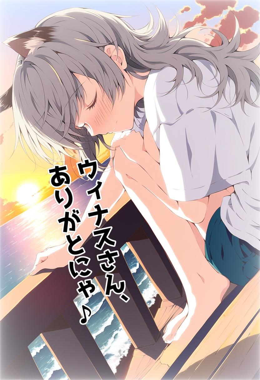 ニャンニャンダ島の夕陽を見ながら、ウィナスに微笑むネコノ…