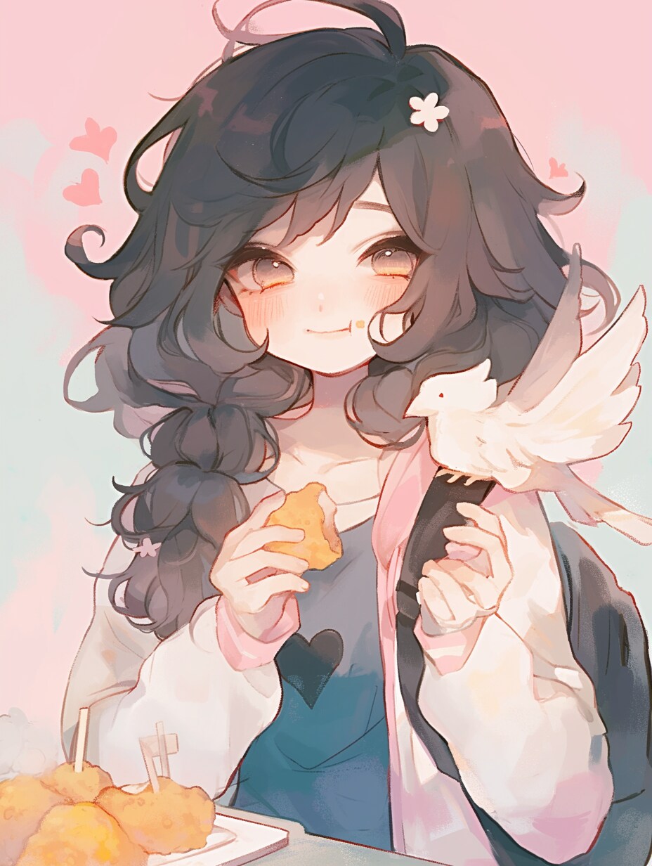 カラスの女の子を指定したのですが、謎の鳥も肩に乗ってます笑