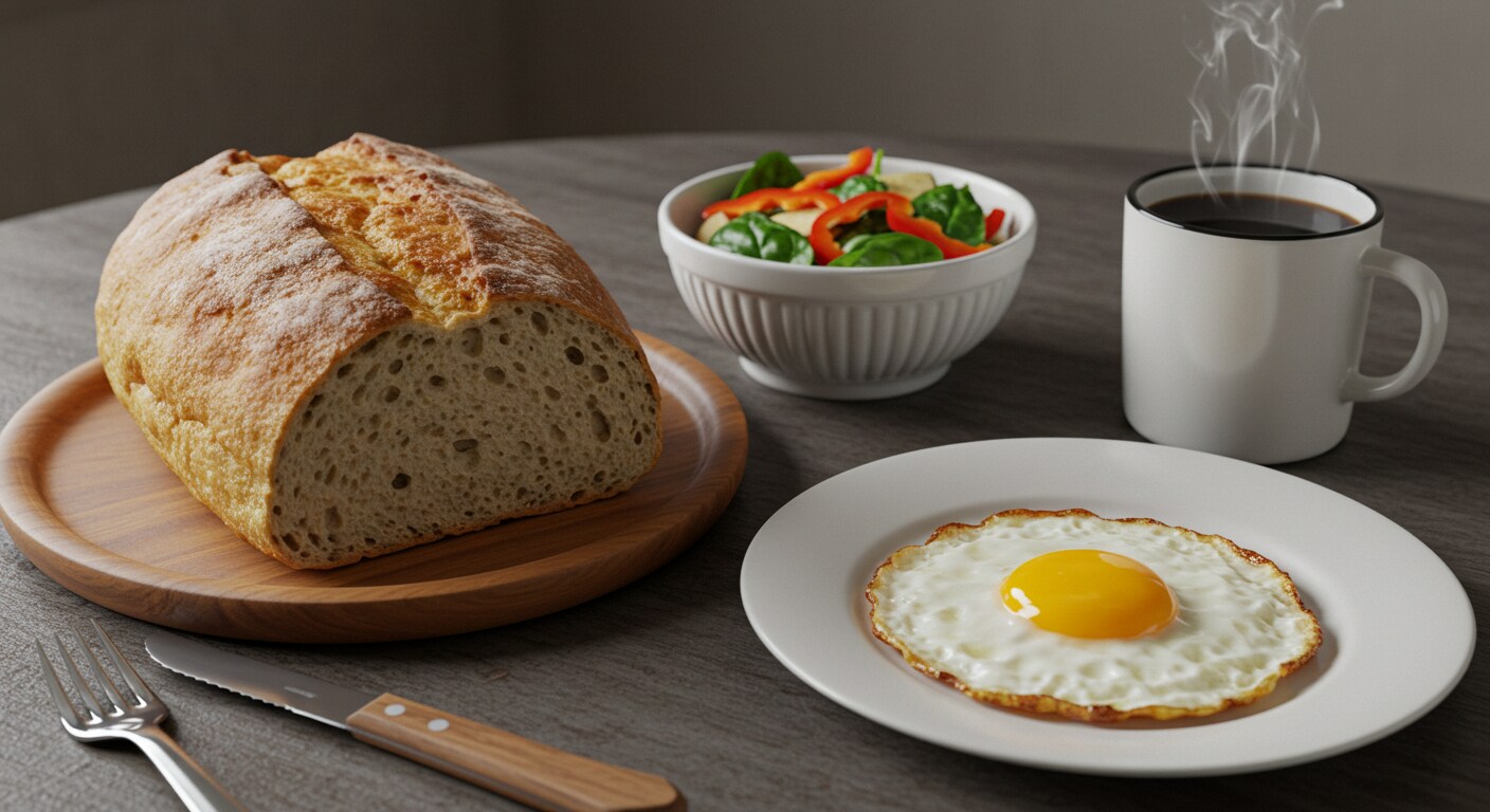 内容は、パン、目玉焼き、サラダ、珈琲に御座います。