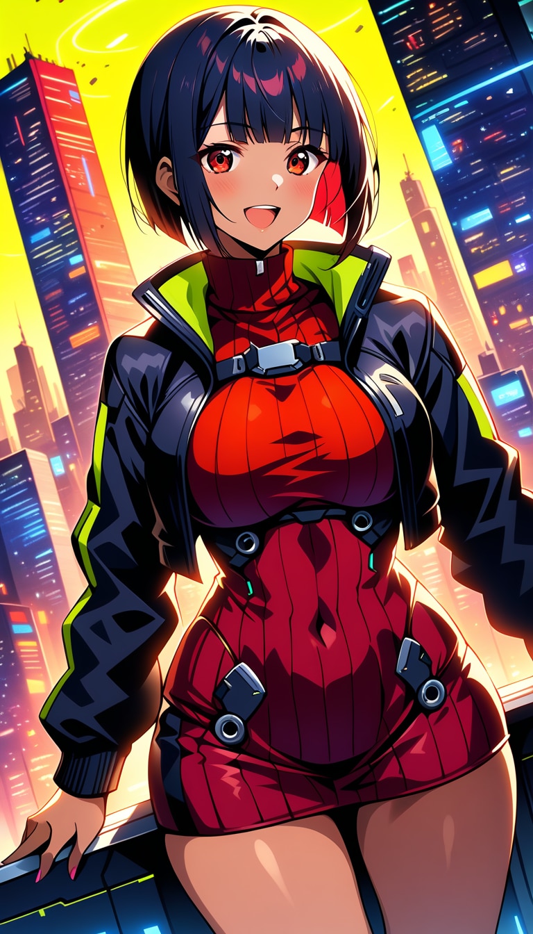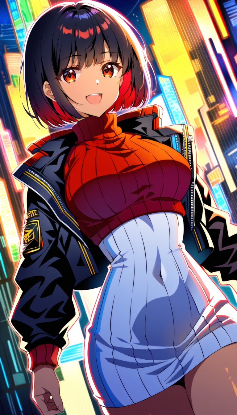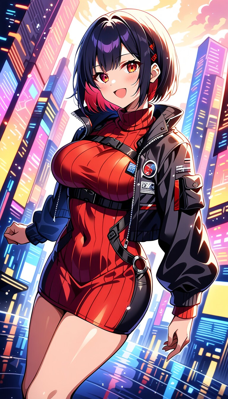 ニットセーター&スタイリッシュショートボブギャル