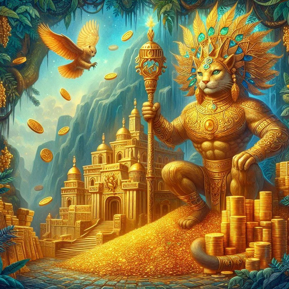 アクリルファンタジー、南アメリカジャングルの伝説の黄金都市エル・ドラードの守護神黄金猫