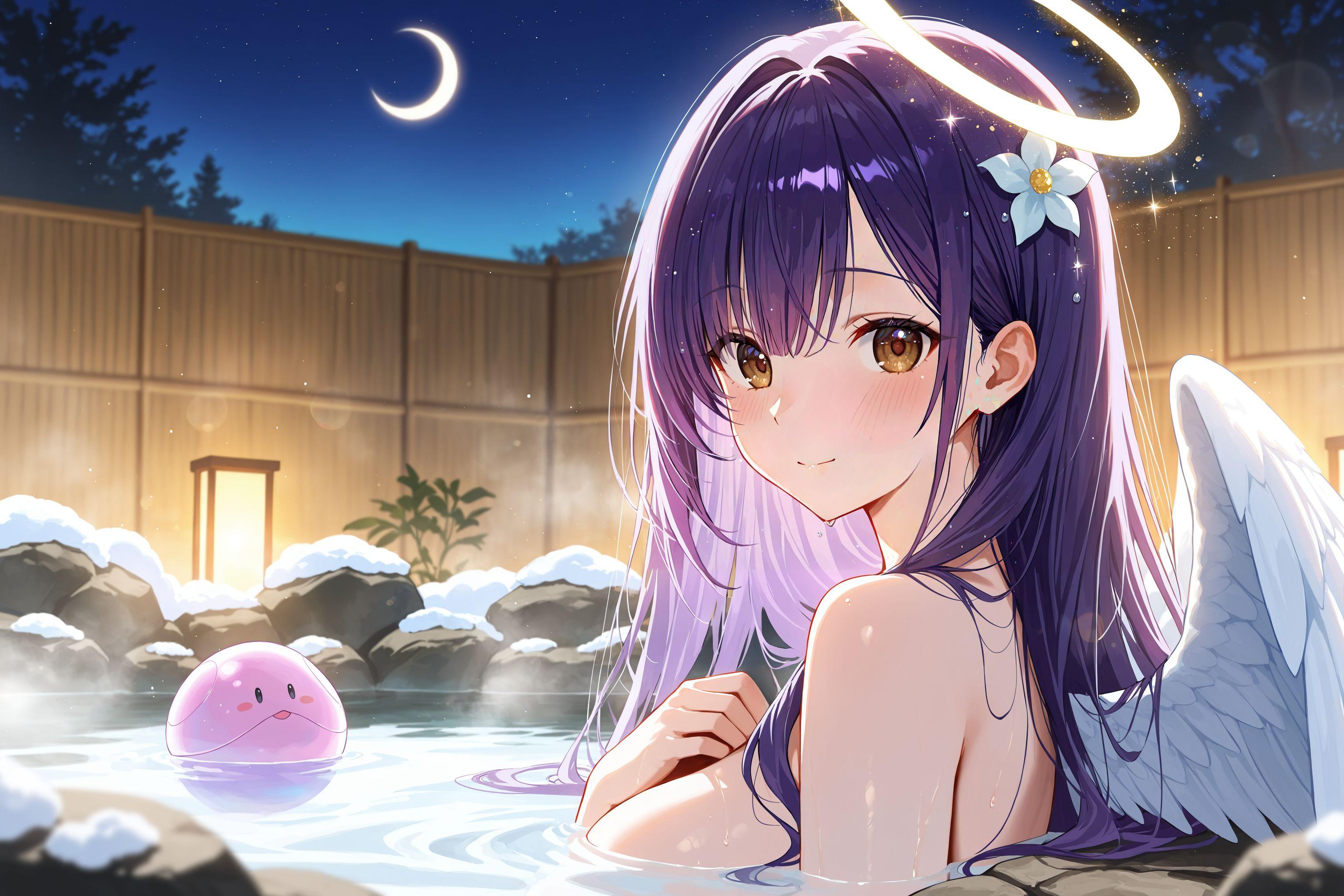 天使さん温泉で休憩中(北国出張中の温泉にて)