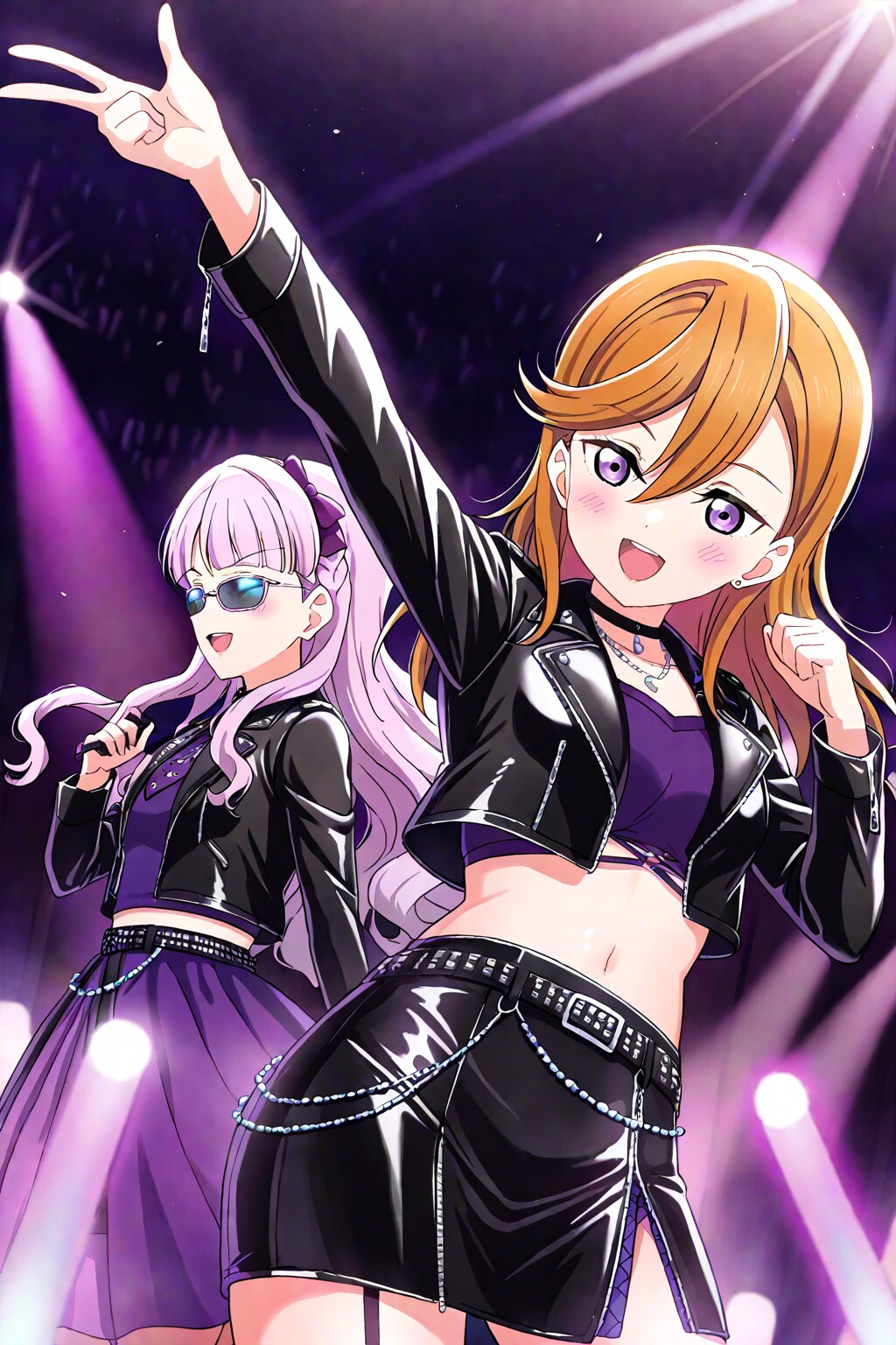 レザー着用の澁谷かのん&ウィーン・マルガレーテ。
