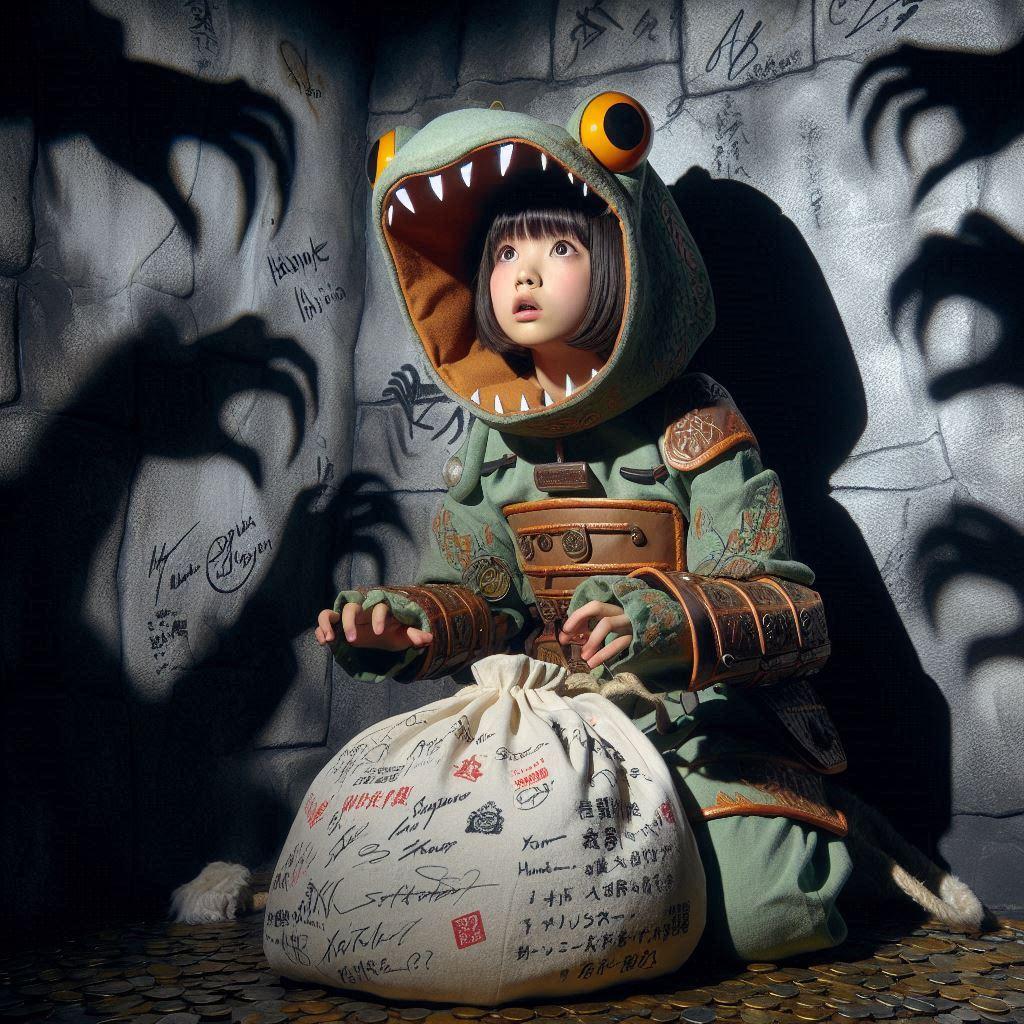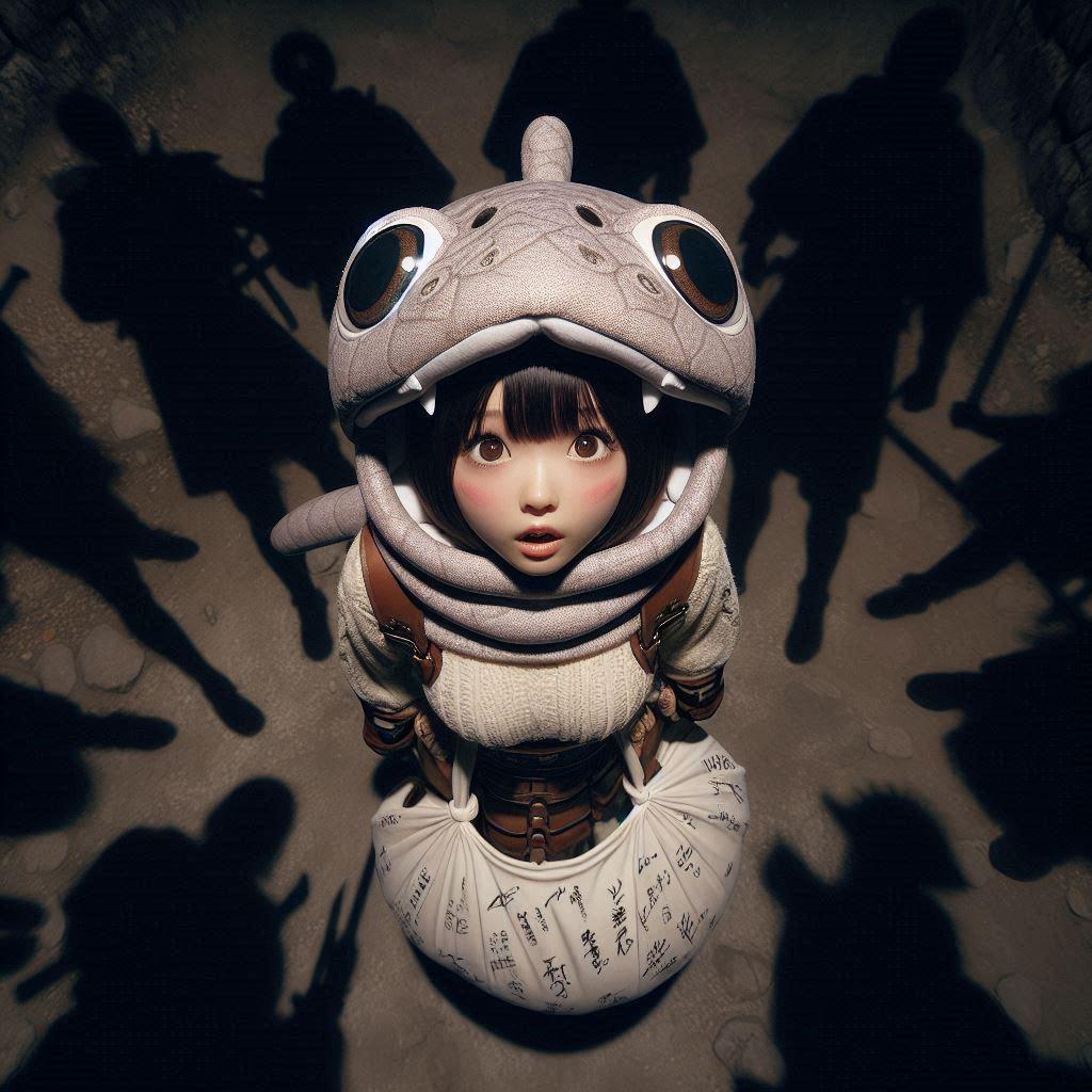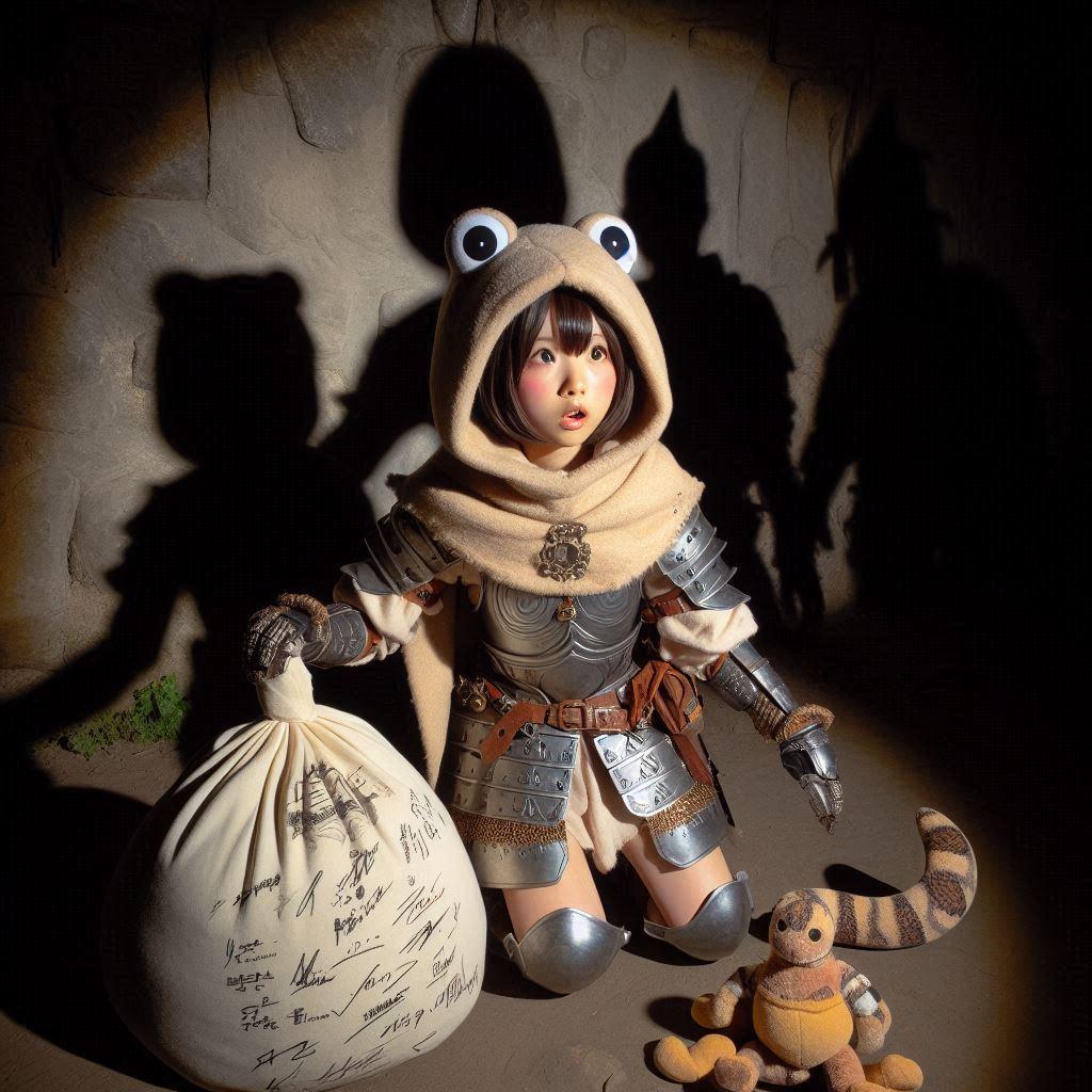 ウチノコは役立たずなので銀行役として残されることになりました。しかし留守番が安全なはずもなく…怪しい影に囲まれたウチノコはビックリしてダンジョンの内部へと駆け出すのであった。