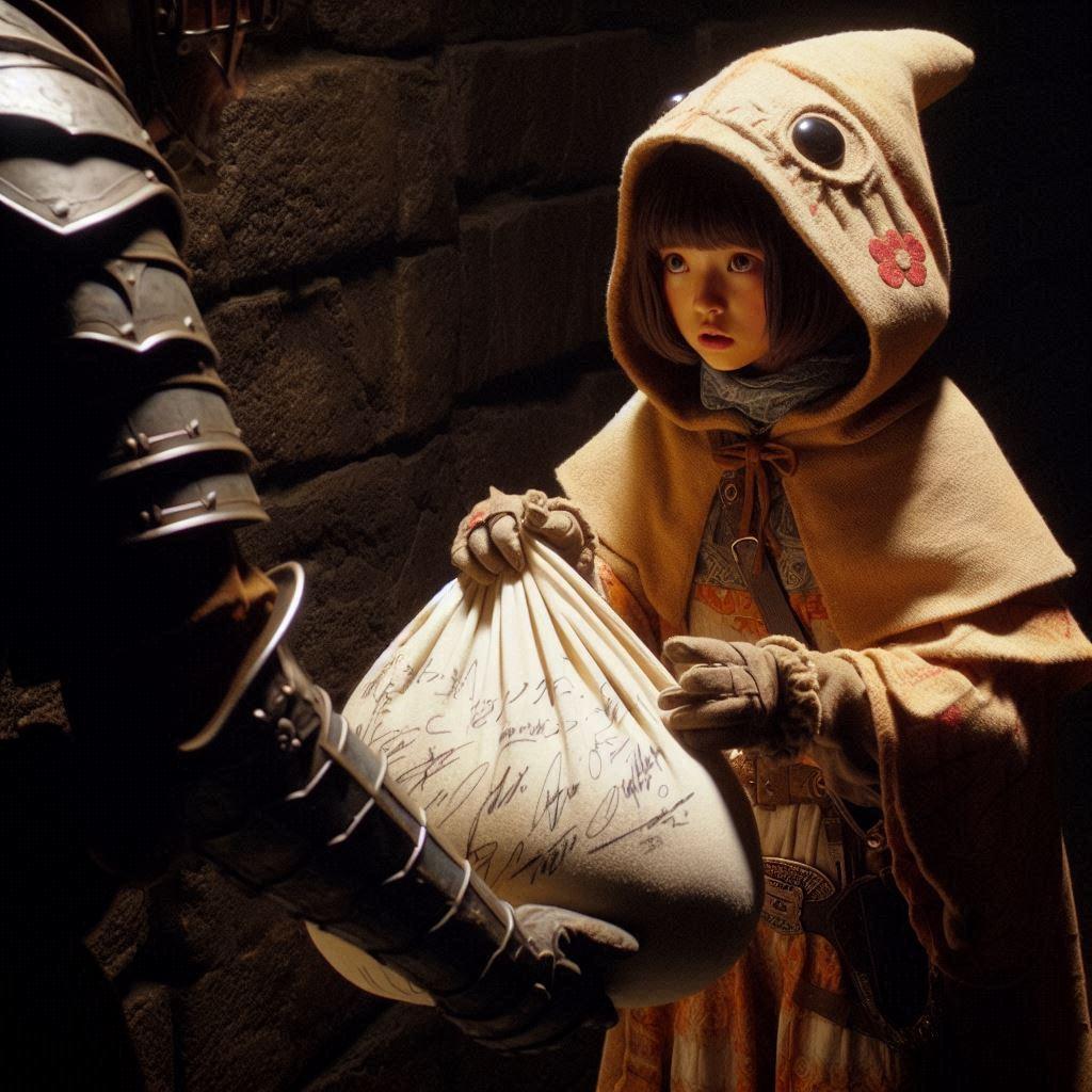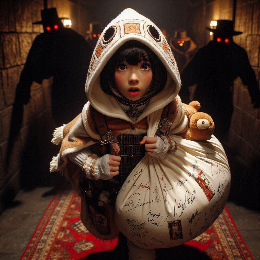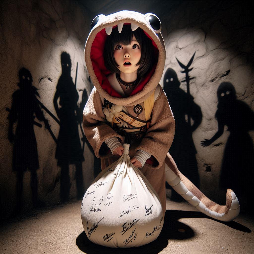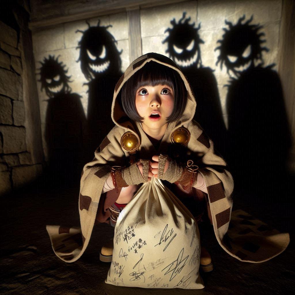 ウチノコは役立たずなので銀行役として残されることになりました。しかし留守番が安全なはずもなく…怪しい影に囲まれたウチノコはビックリしてダンジョンの内部へと駆け出すのであった。