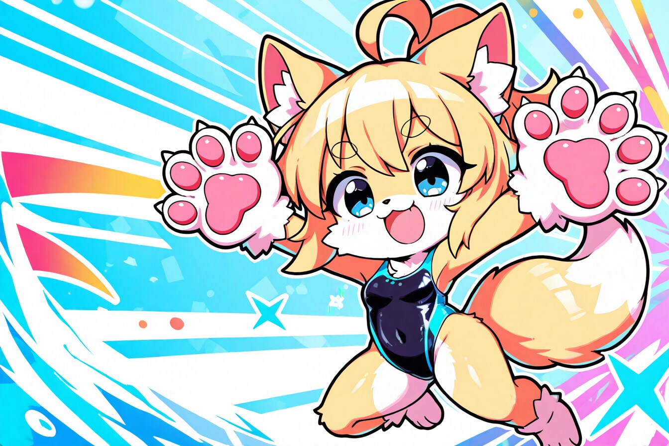 内容は、ハイレグ?競泳水着を着て元気いっぱいにはしゃぐ♪なケモノっ娘達💕です♪。