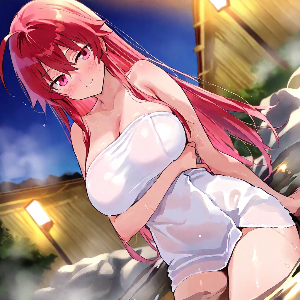 視線の先は同性の友人か、ボーイフレンド(混浴中)か、想像が膨らみますね!