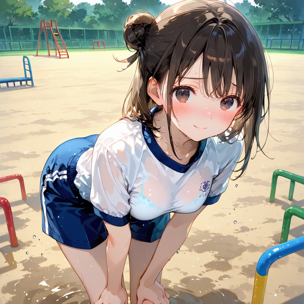 誰もいない運動場の隅っこで、ふたりきりの水の掛け合い。
