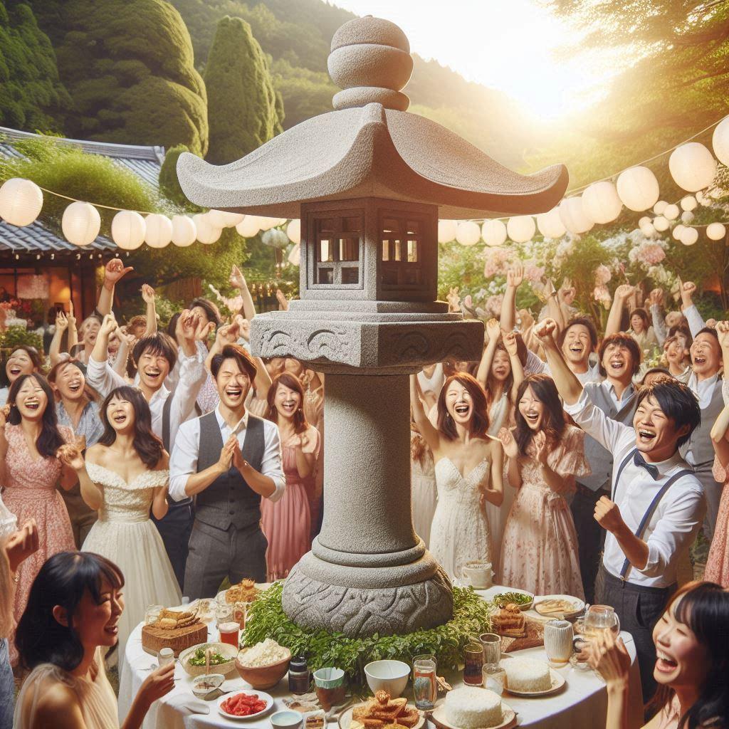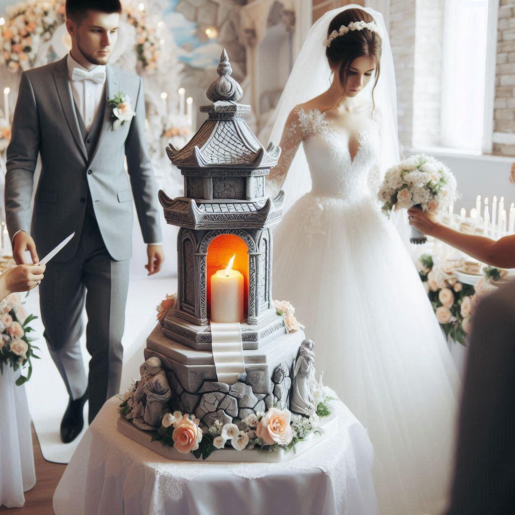 ③呪文を少し変えて、ケーキ入刀も作ってみました。石灯籠風のケーキです。中にろうそくがあるけど溶けないか心配😅