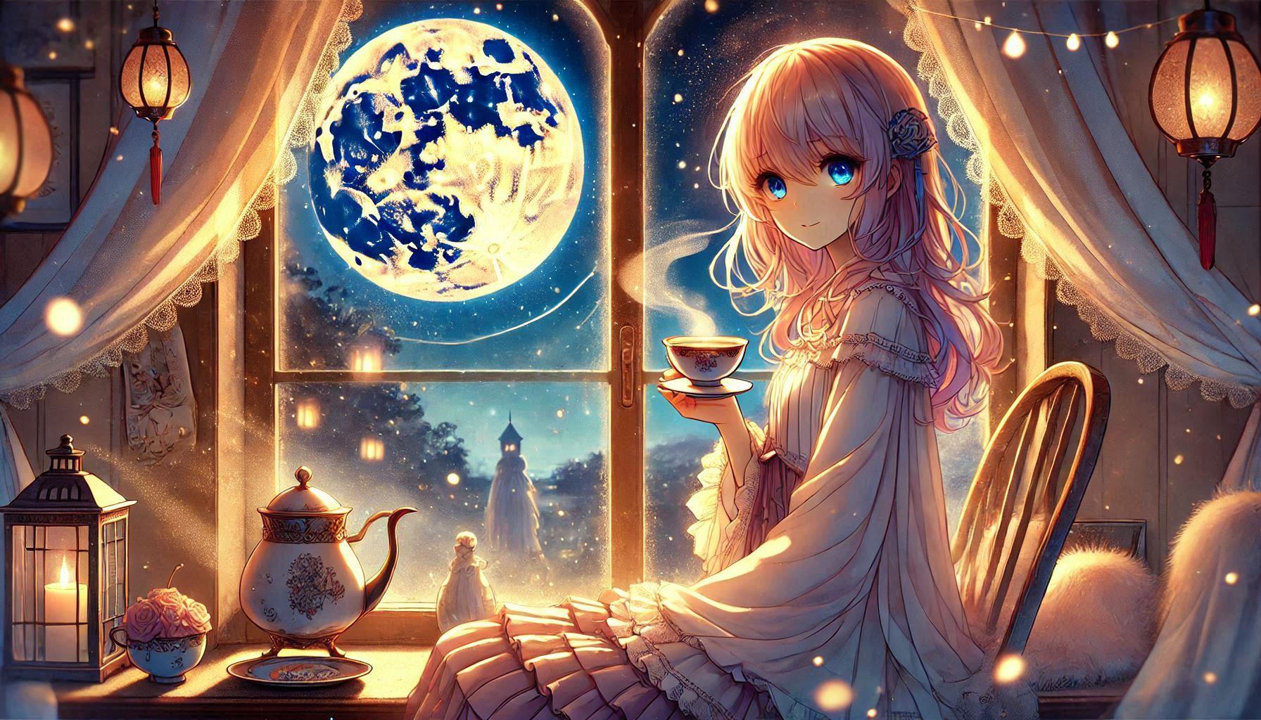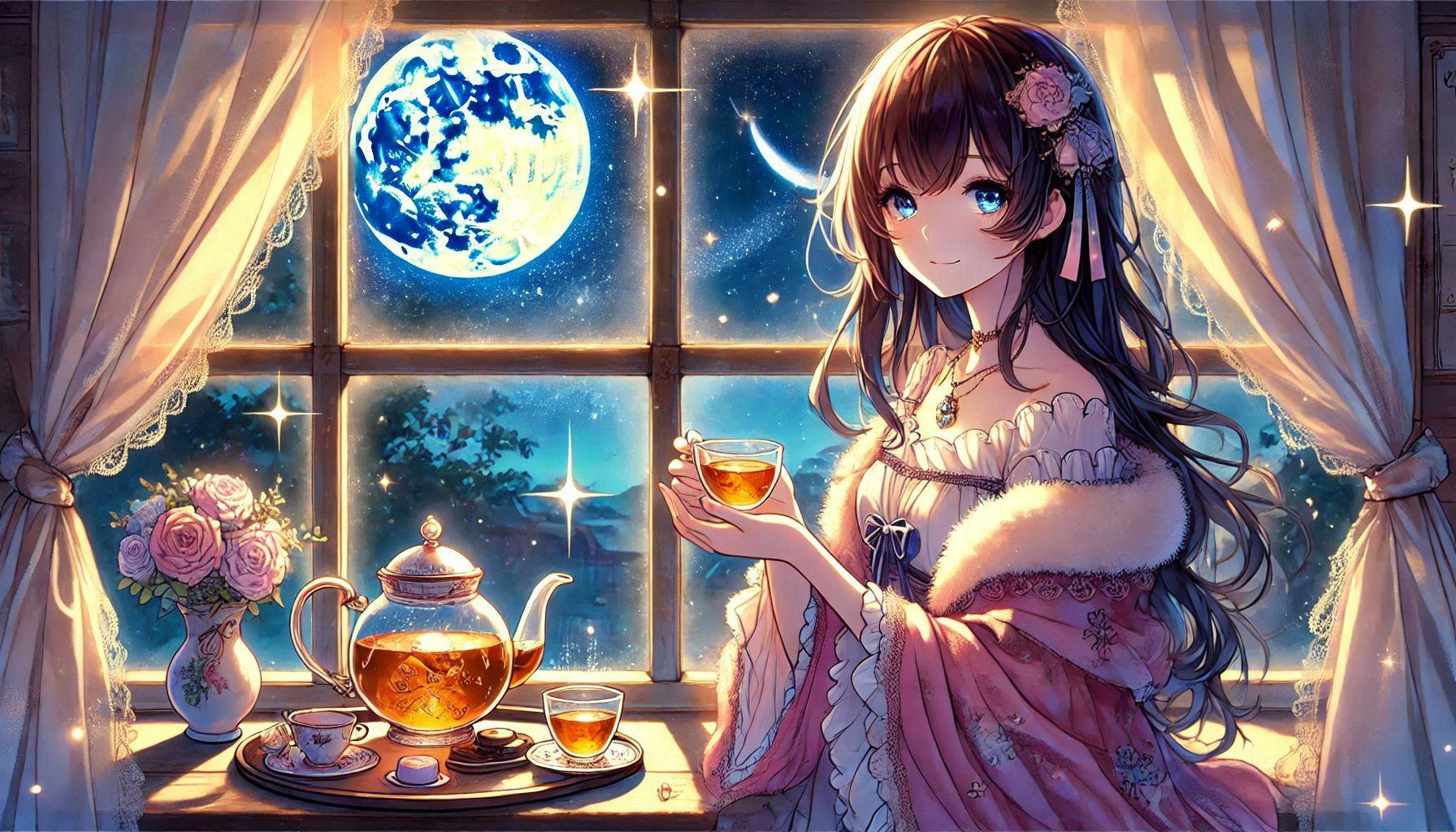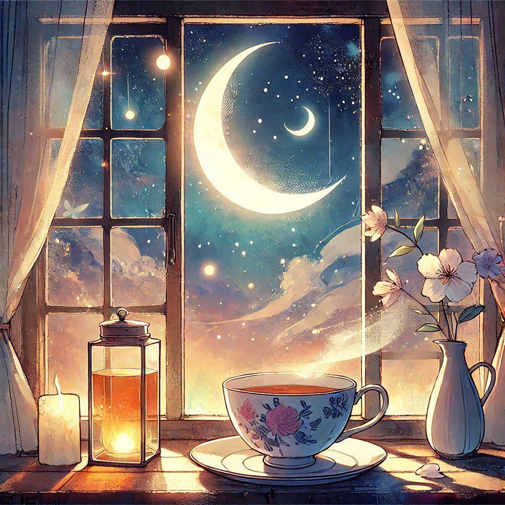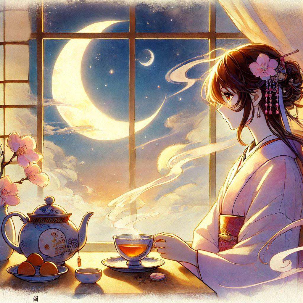 月が美しい静かな夜を眺めながら温かな紅茶をいただこう。