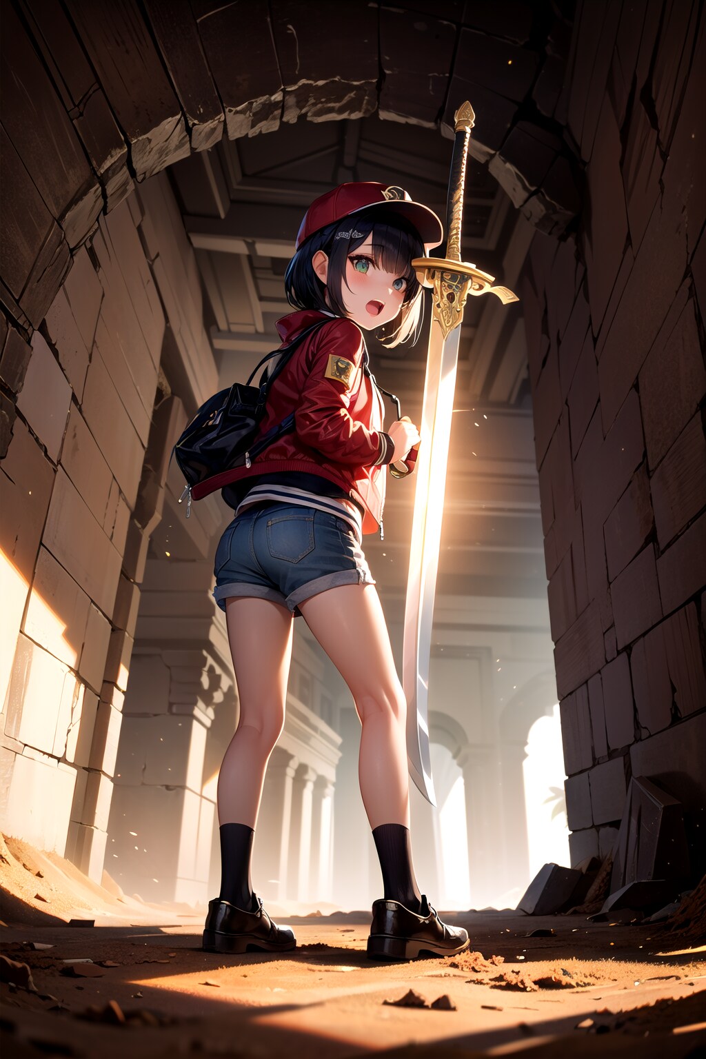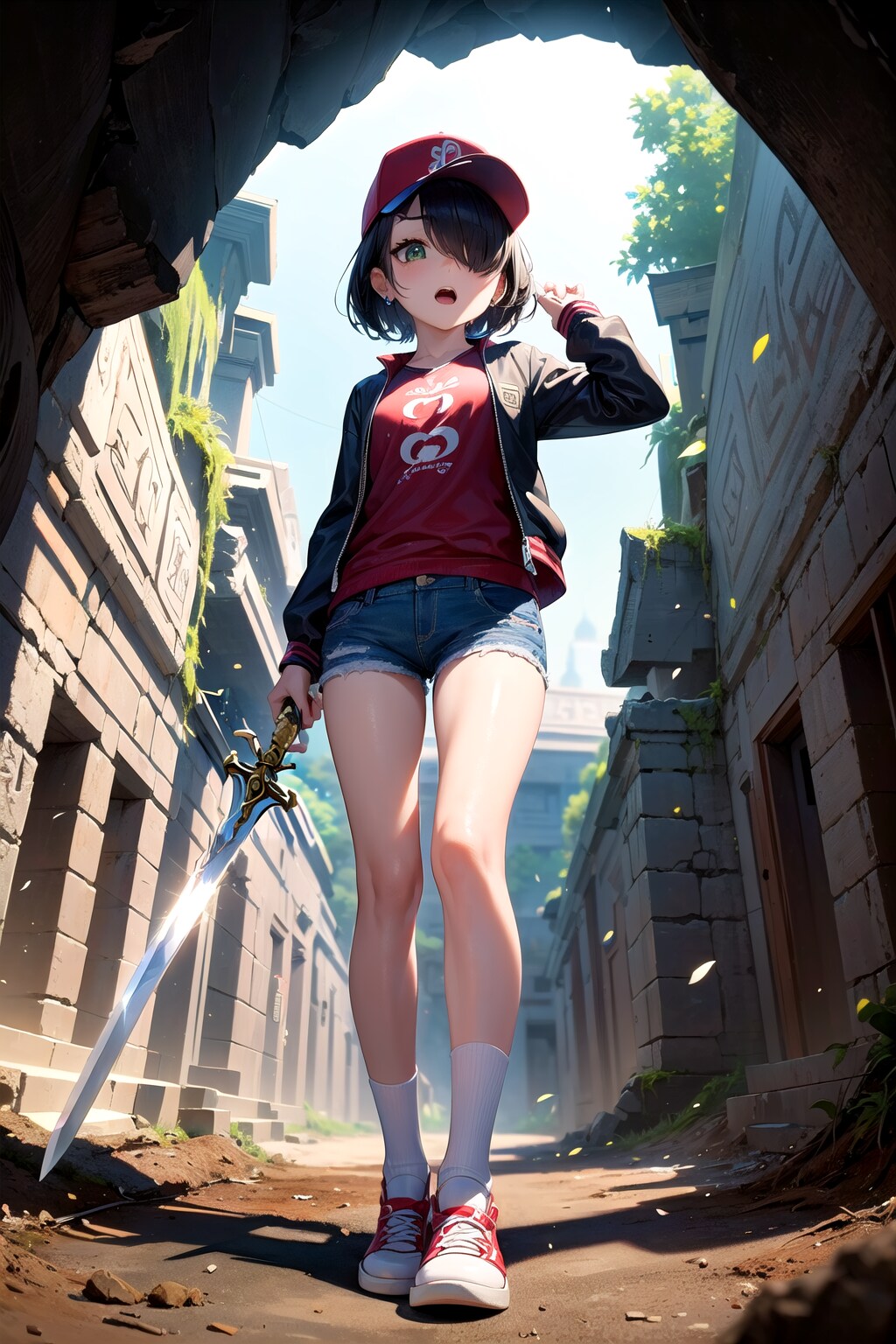 遺跡の奥で偶然、祭壇のような場所?に突き刺さっている寂れた剣?の様なモノを発見。