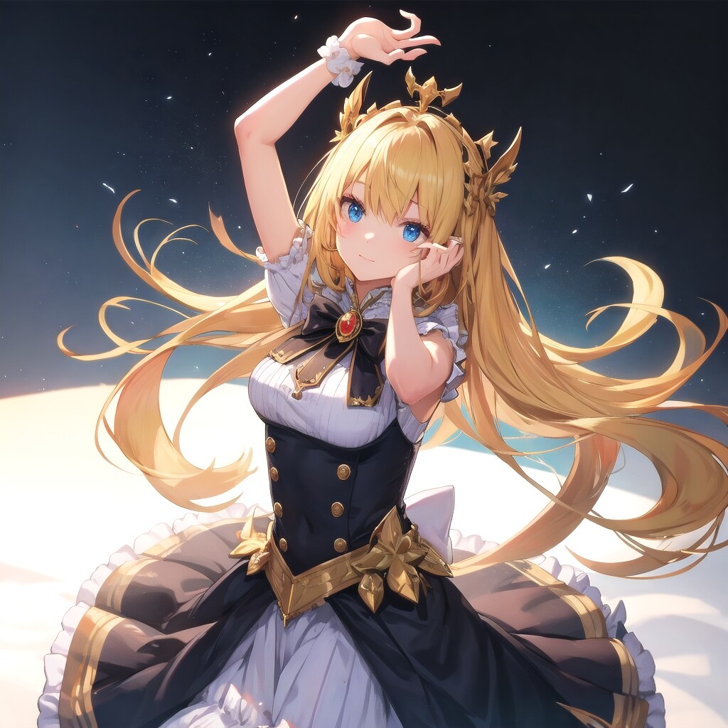 3枚目TOPAZ:i2iで生成。アホ毛は無いのですが、背景の輝きが凄いですね。