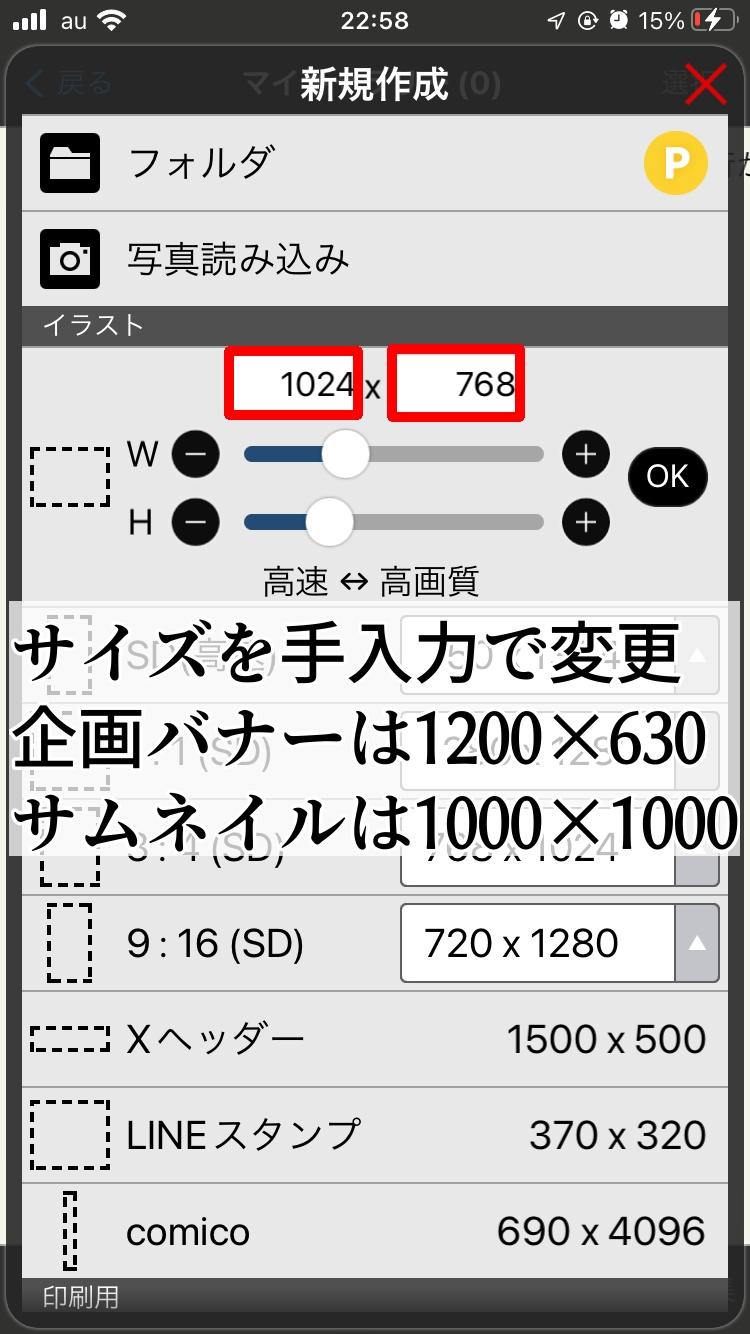 使う機能:新規作成画面、写真の取込み、ツールバーの文字入れ