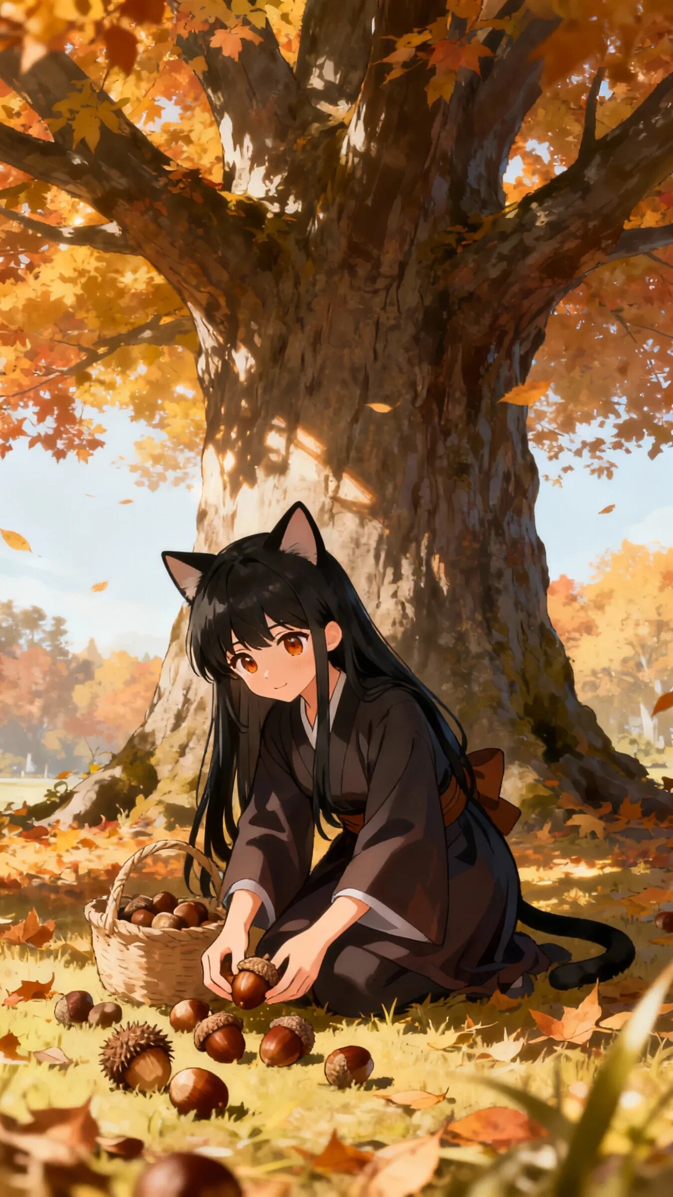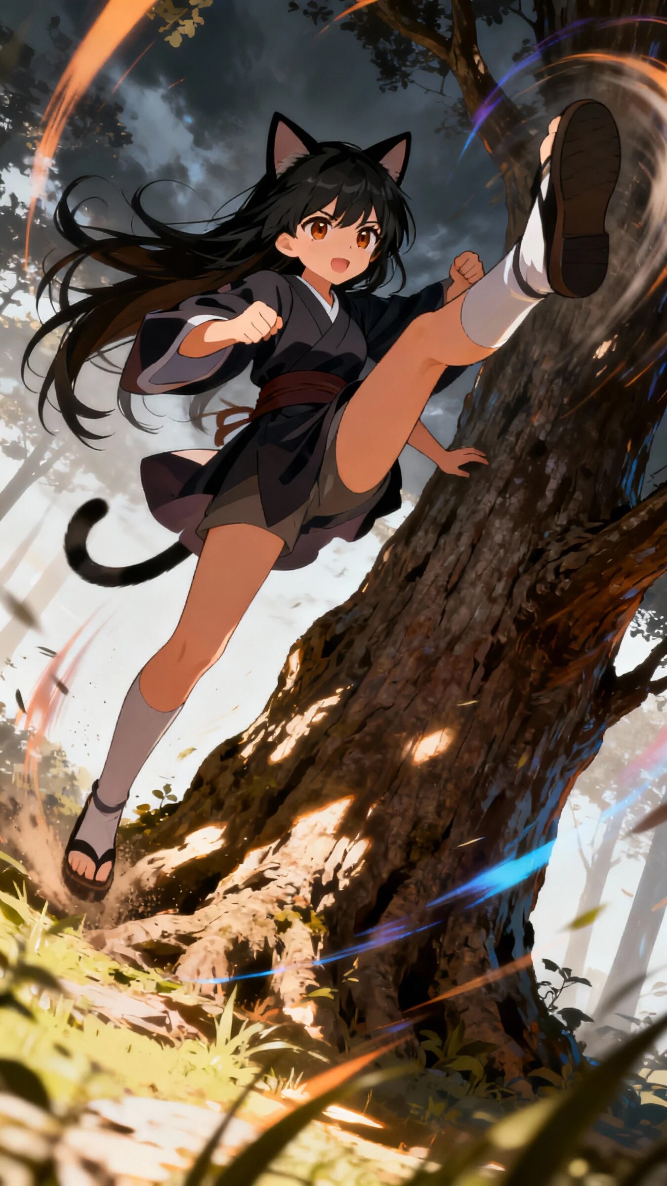 1枚目、ドングリの木を蹴り飛ばすさくらちゃん