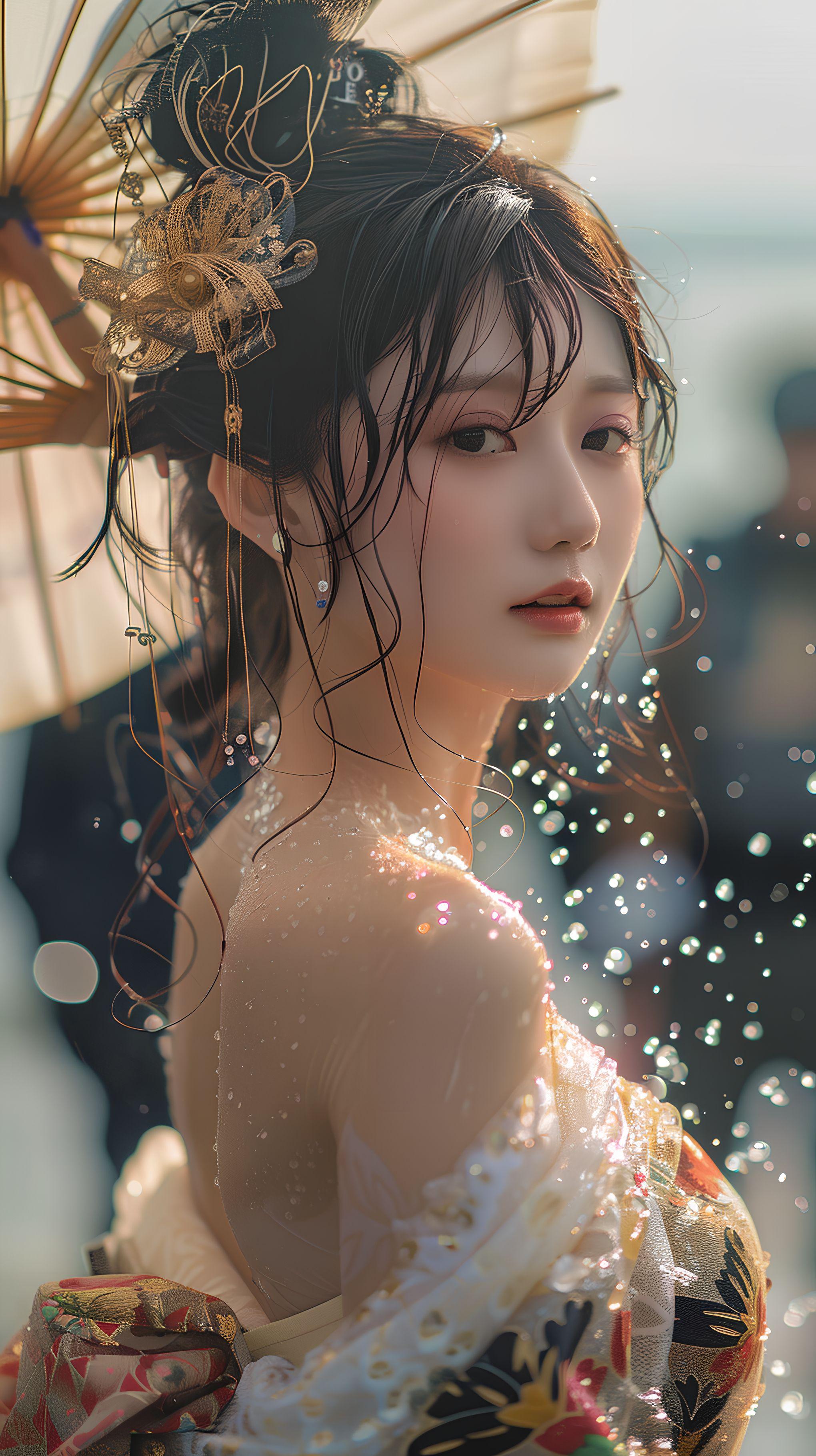 濡れ着物美人