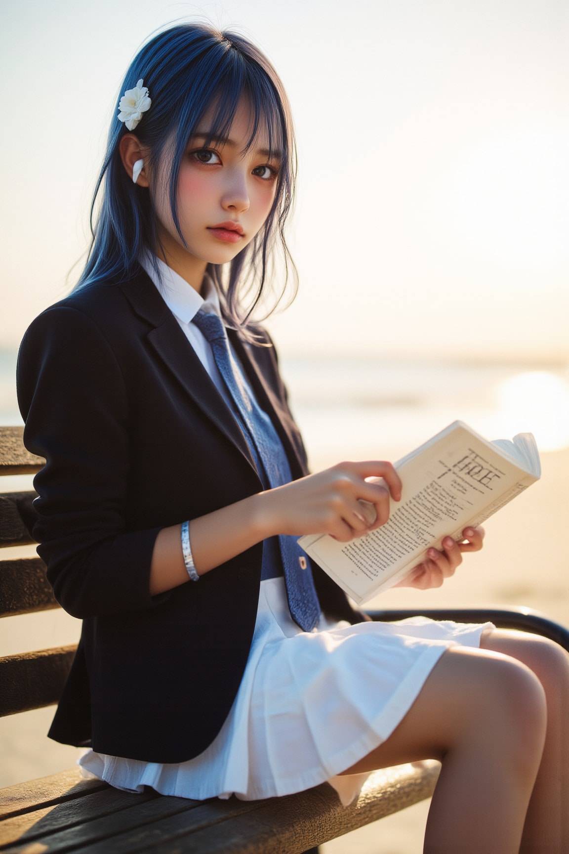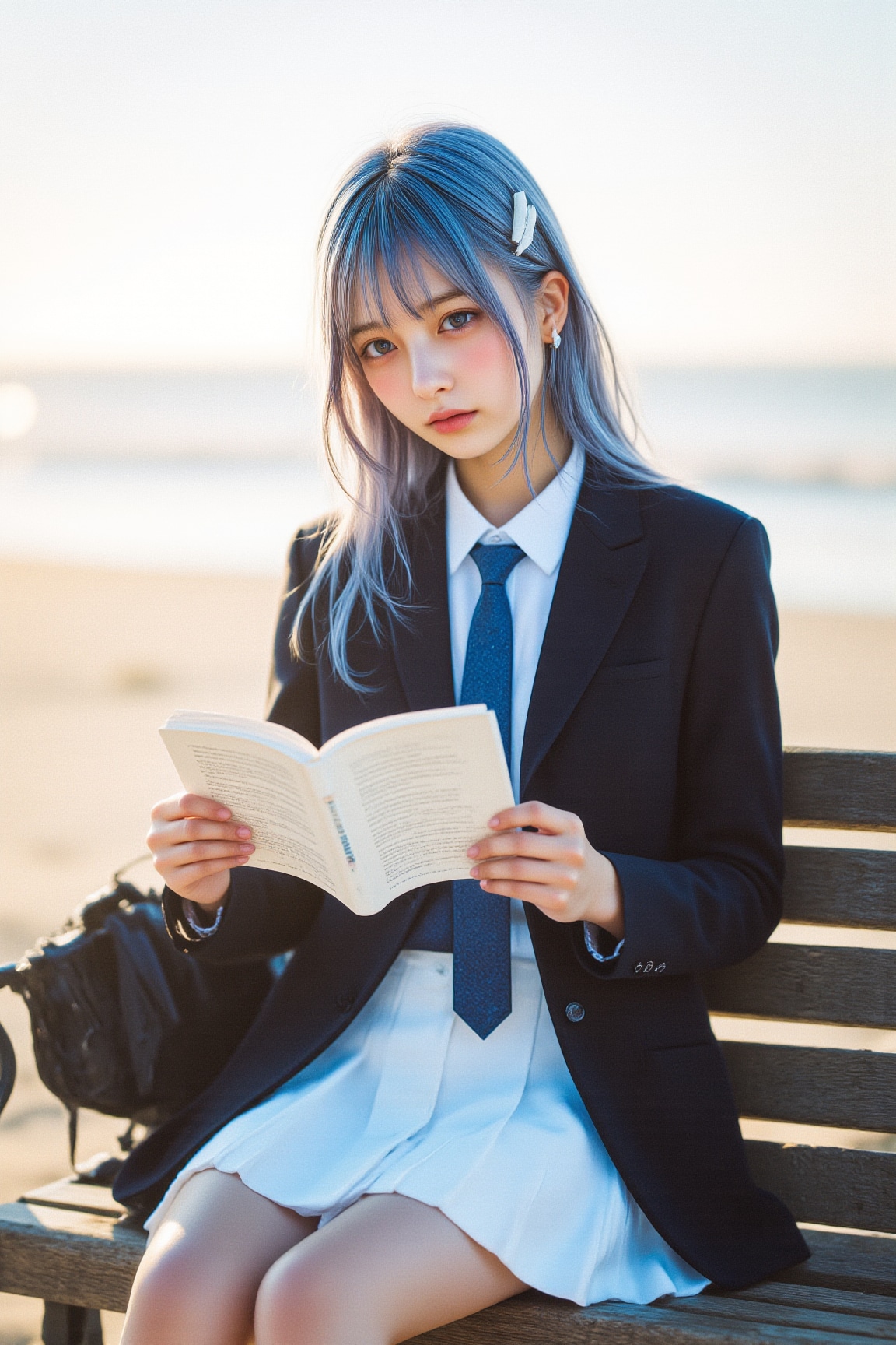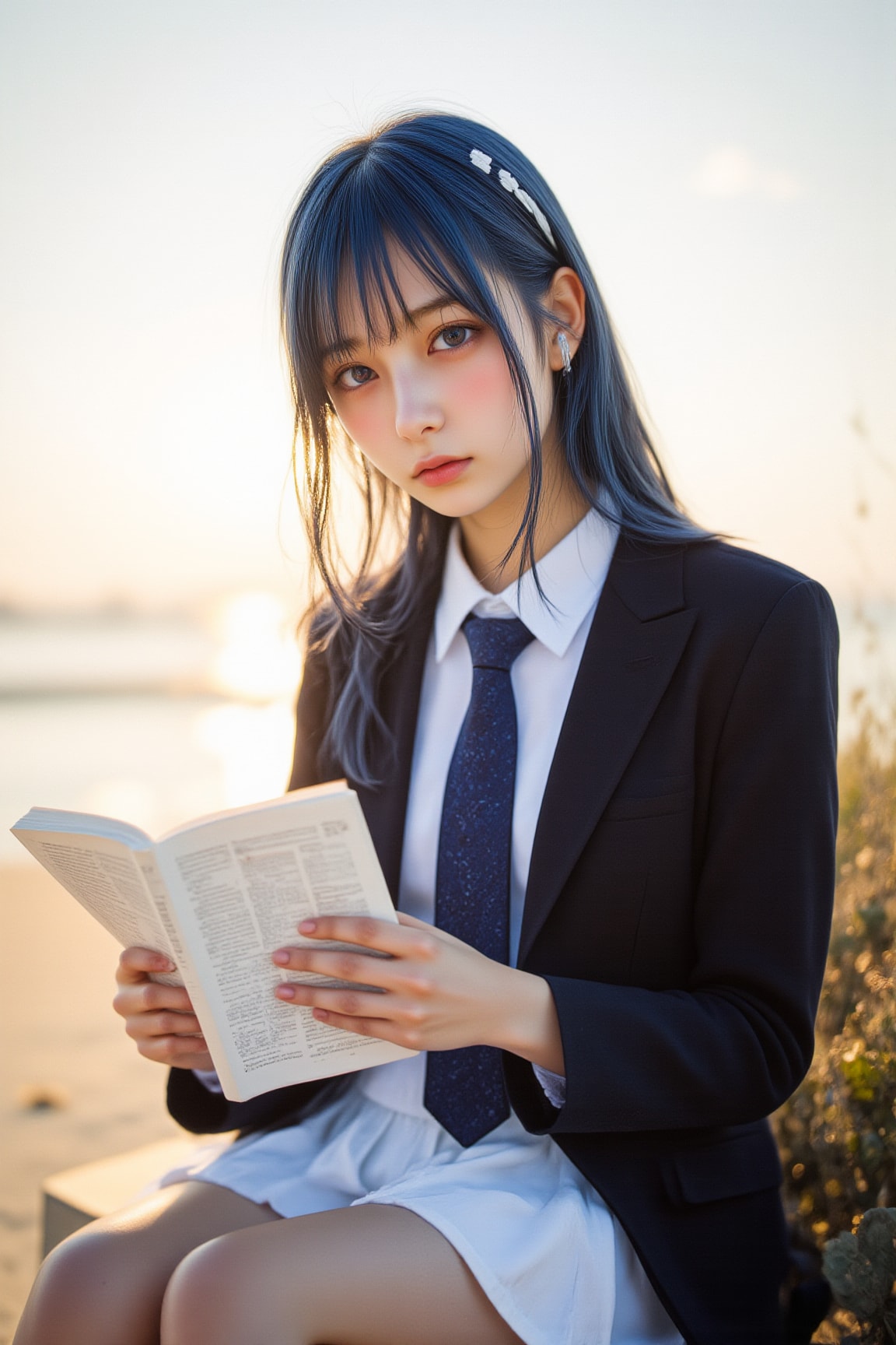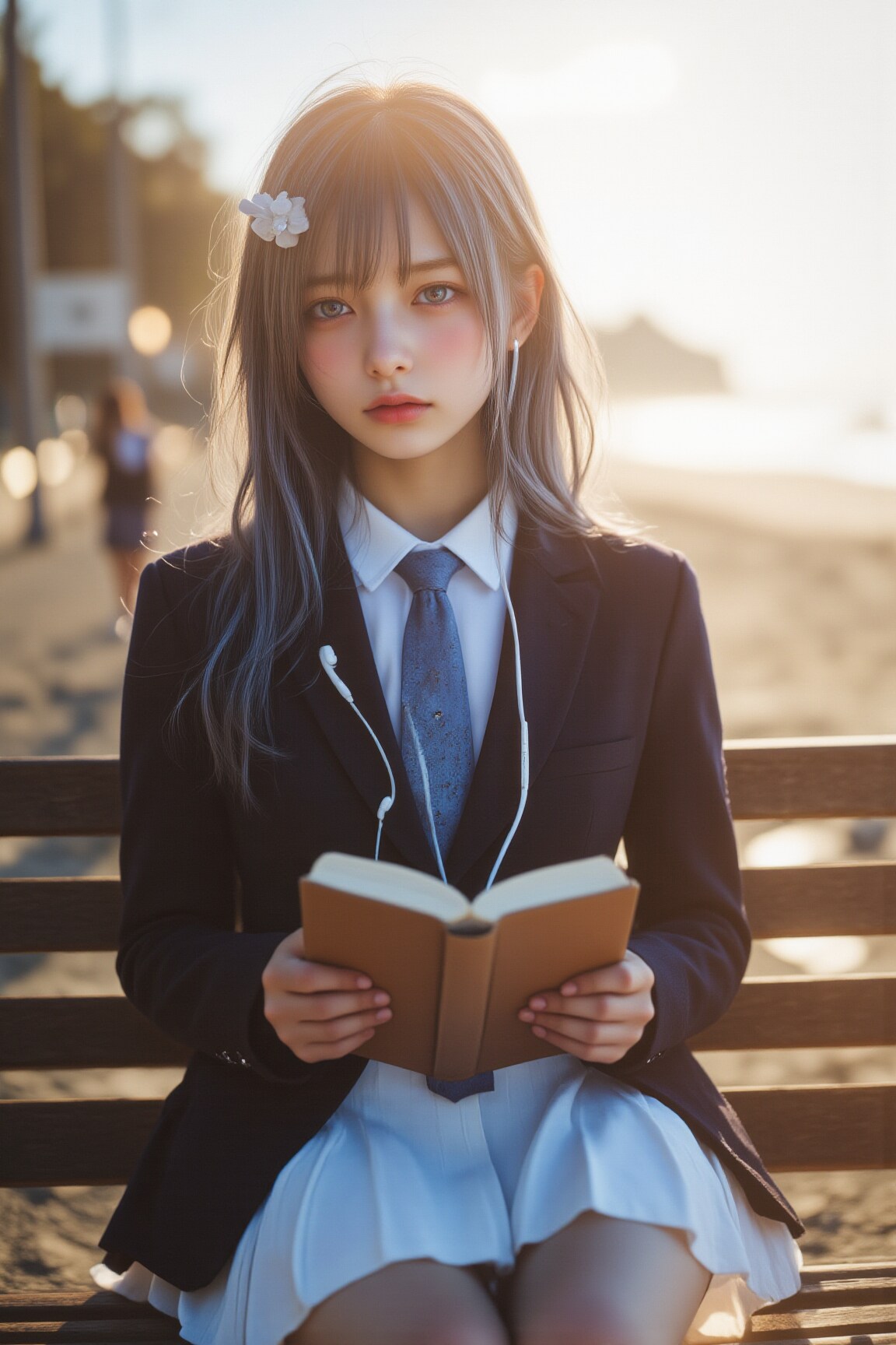 海辺で音楽を聴きながら読書するチサちゃんです。