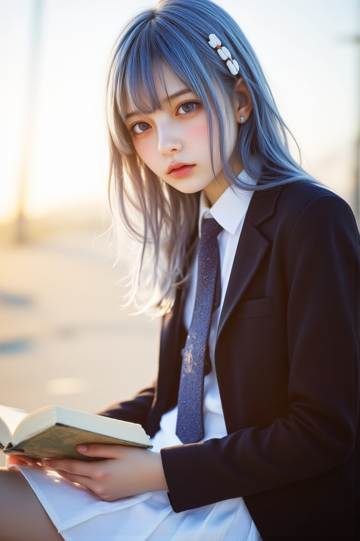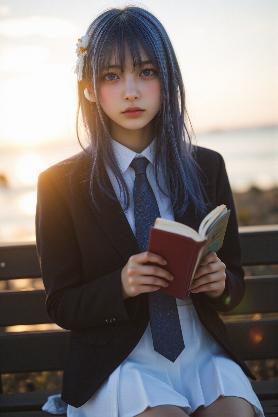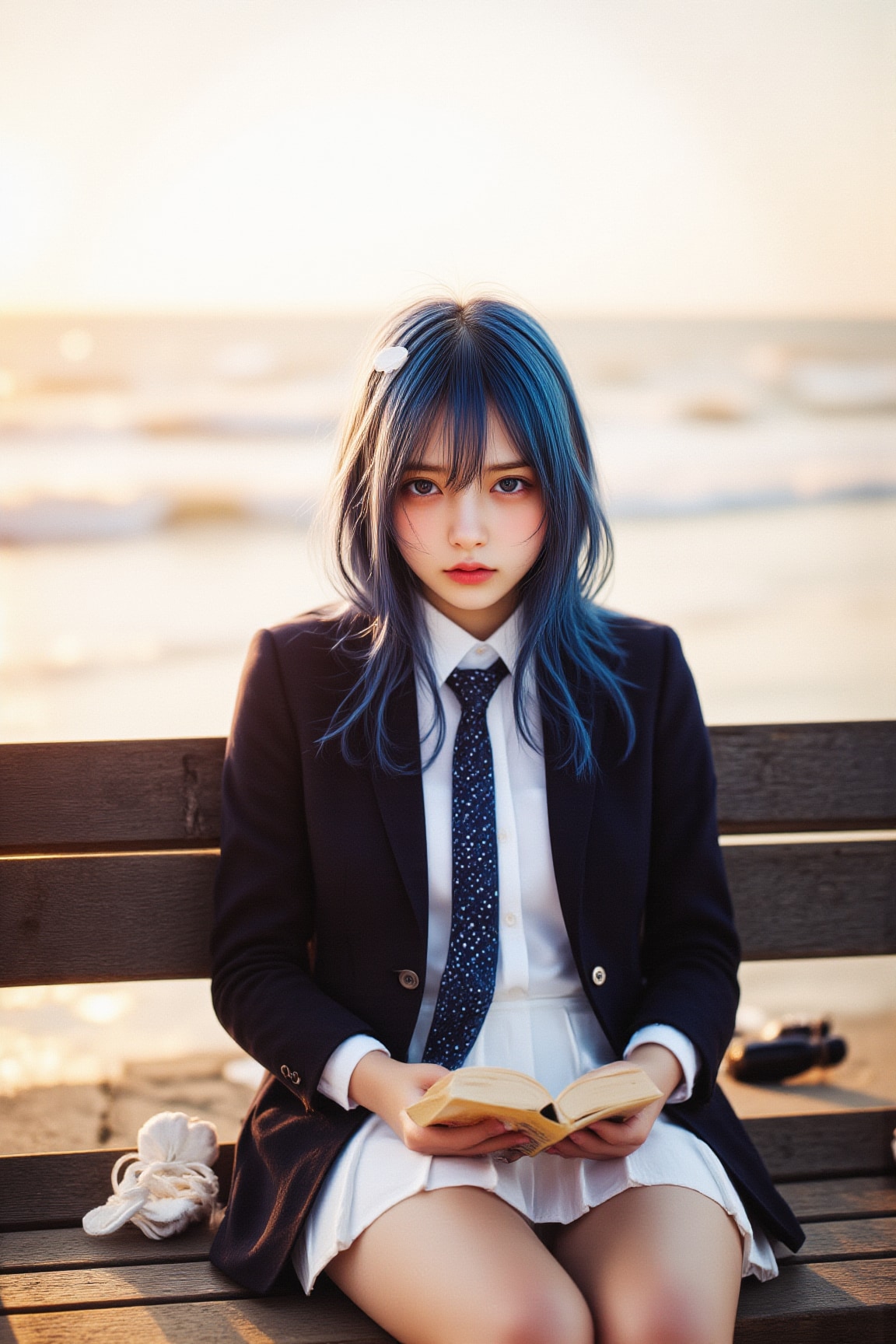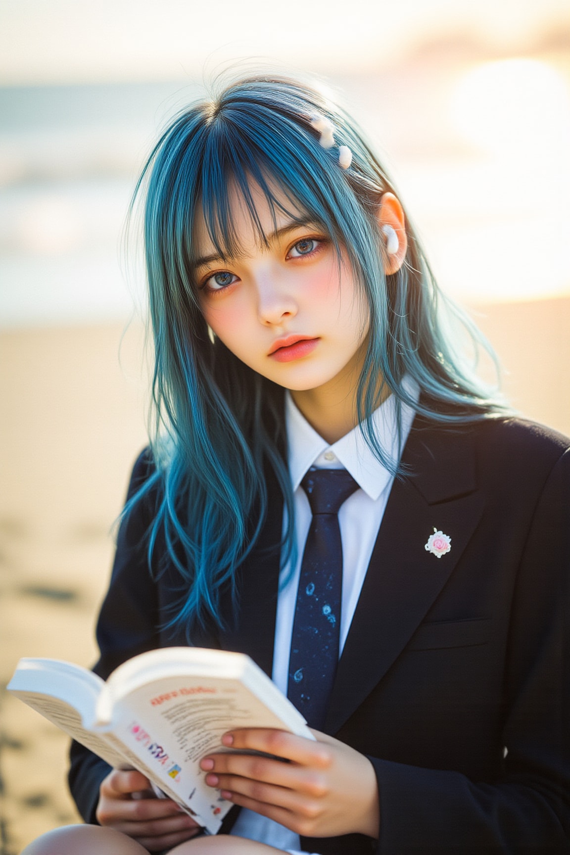 海辺で音楽を聴きながら読書するチサちゃんです。