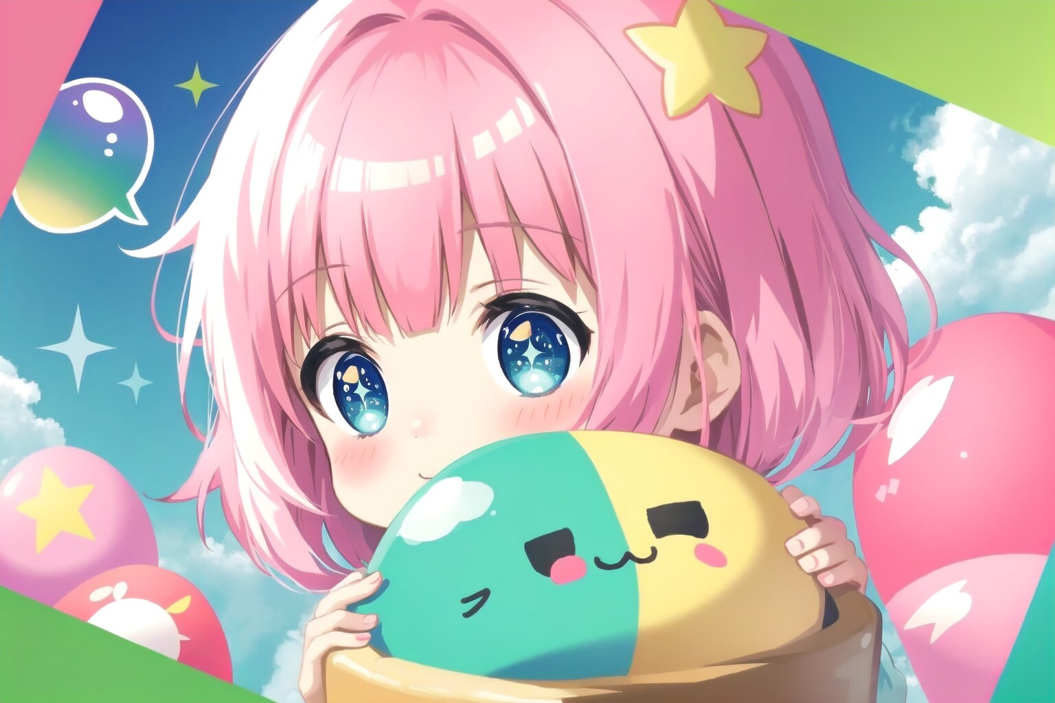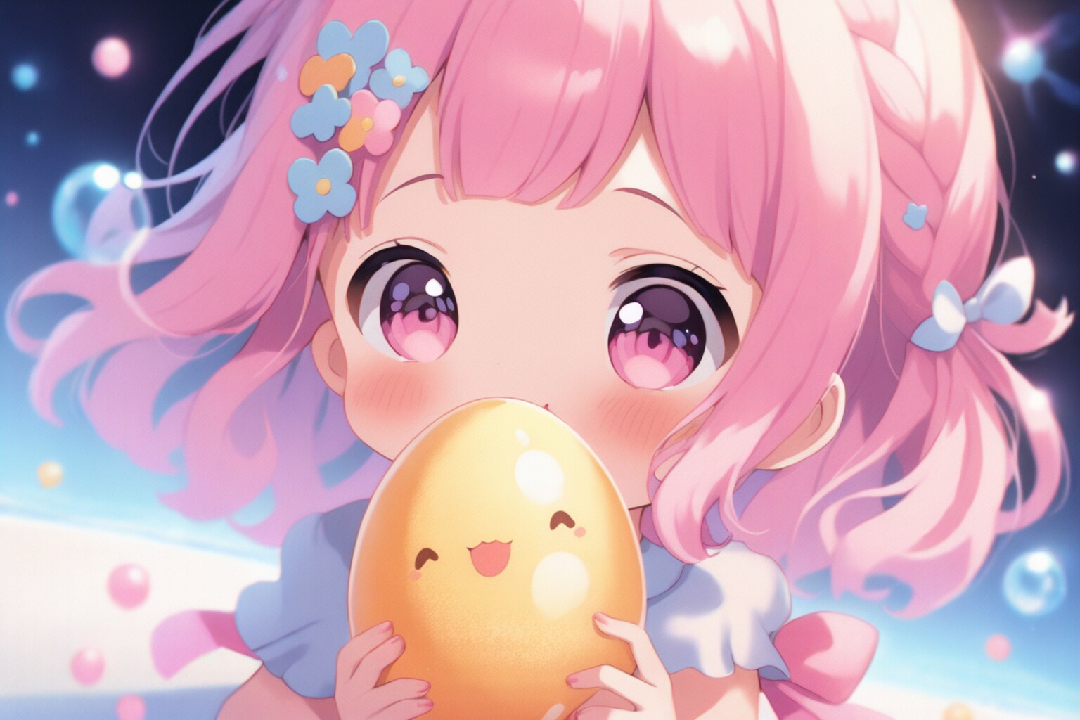 3枚目(SD1.5版):こちらはやたらと大きい卵を見つけたようです。顔はやはり共通なのか?