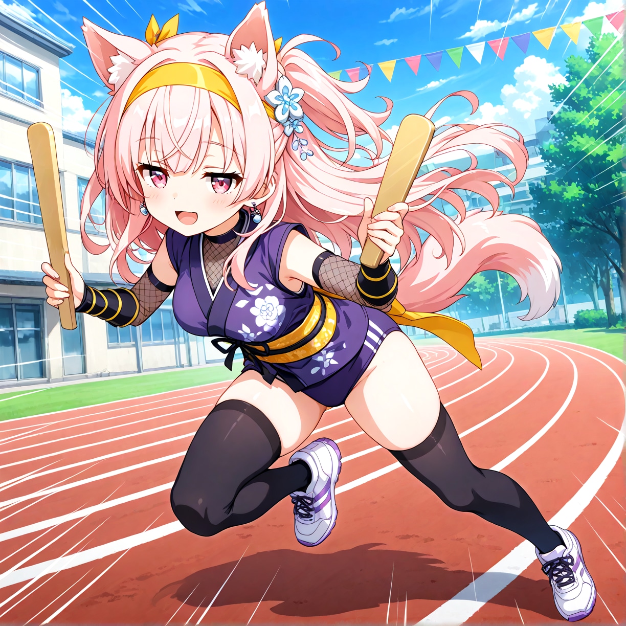 せっかくブルマなのでバトンリレーをさせてみました。 …バトン?