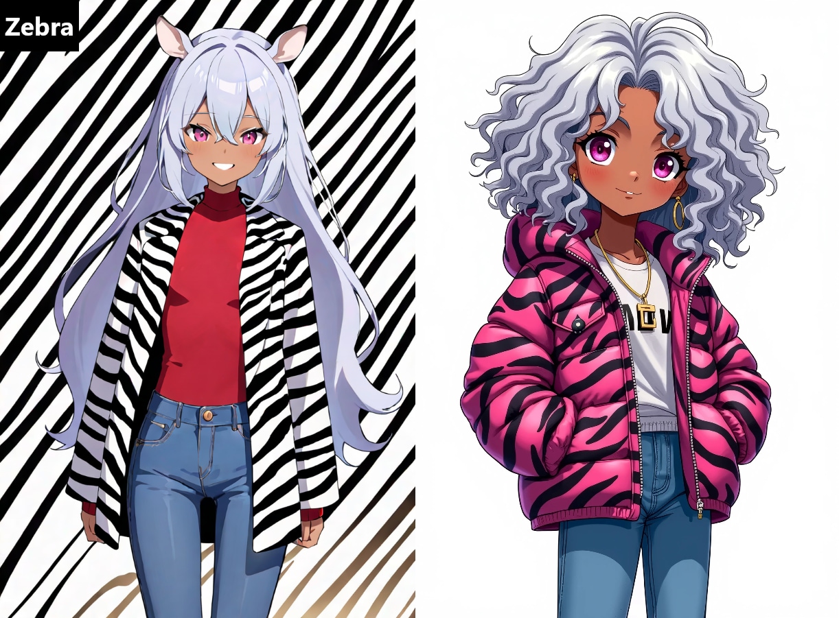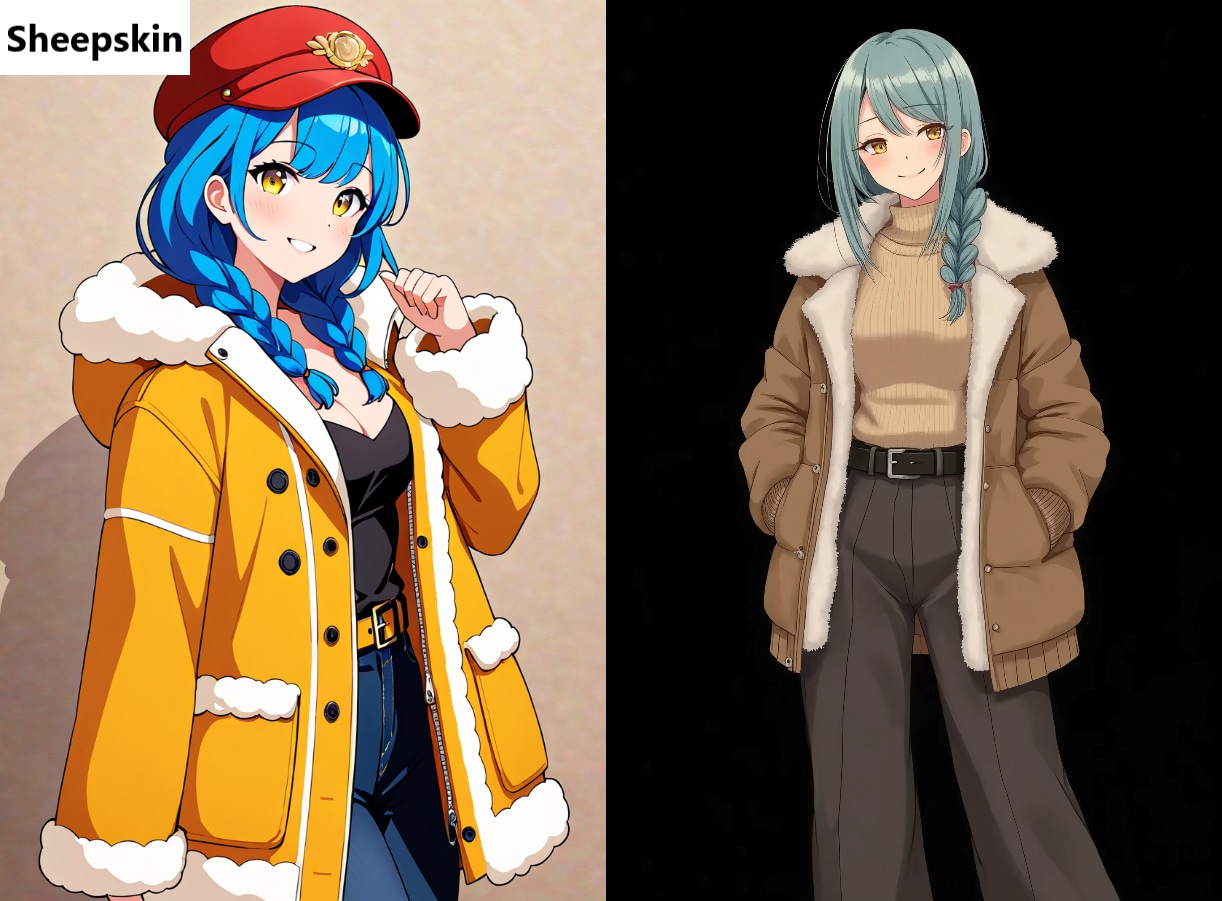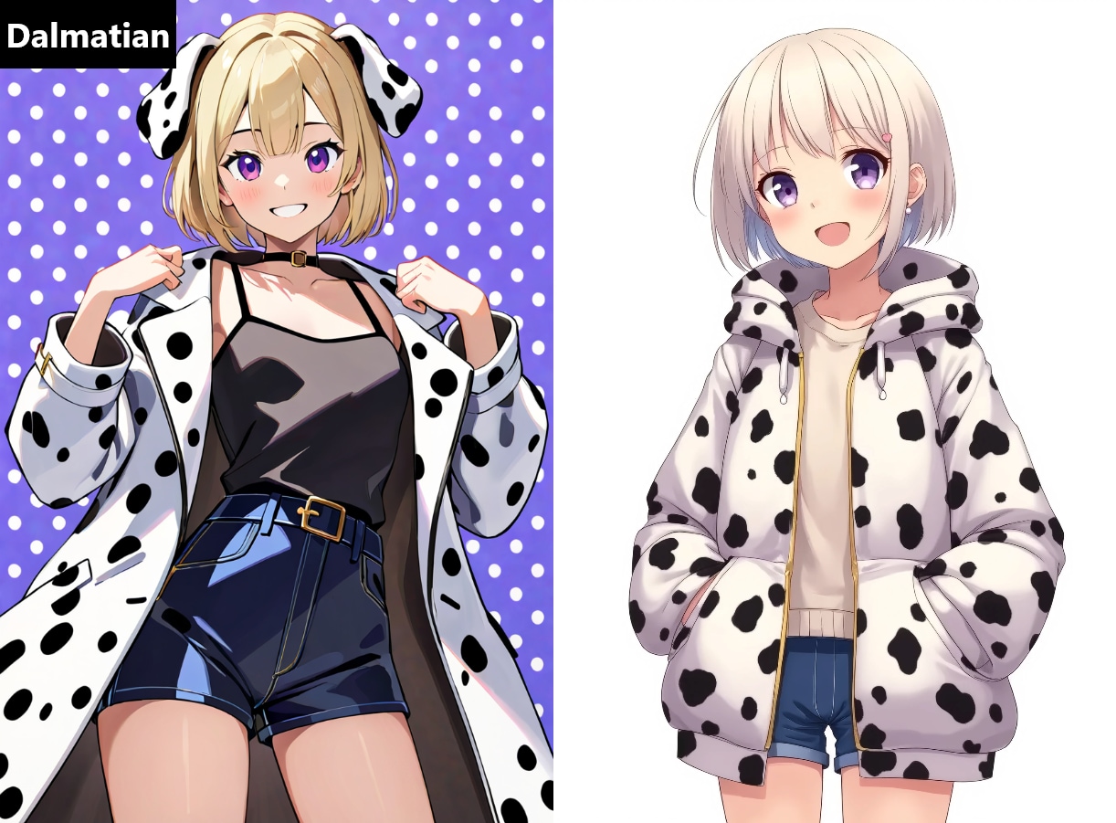 [左:ウールコート]〇〇 print wool coat, [右:ダウンコート]〇〇 Down coat, ※〇〇=動物名