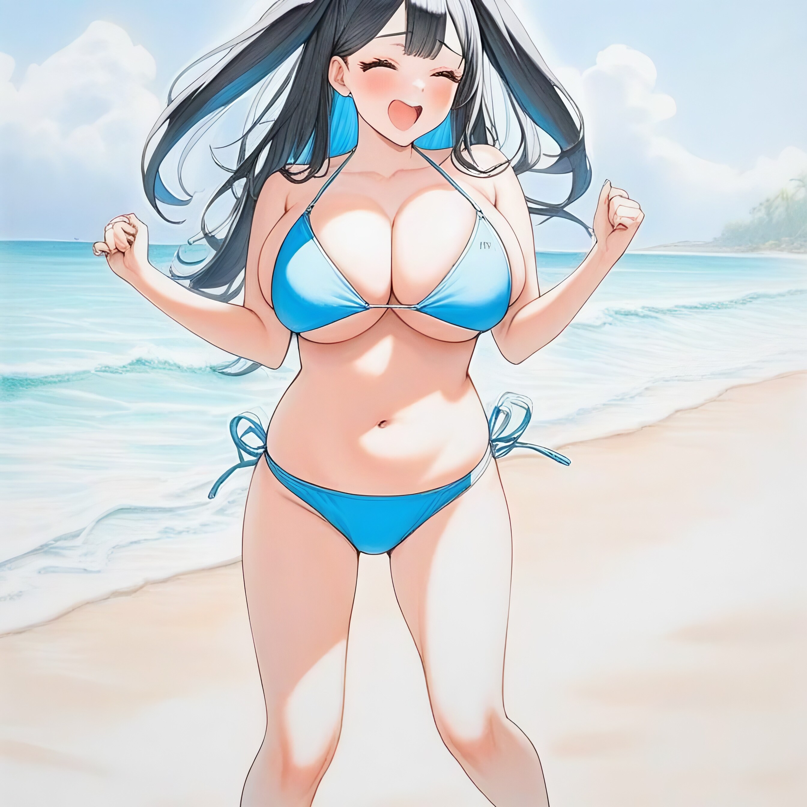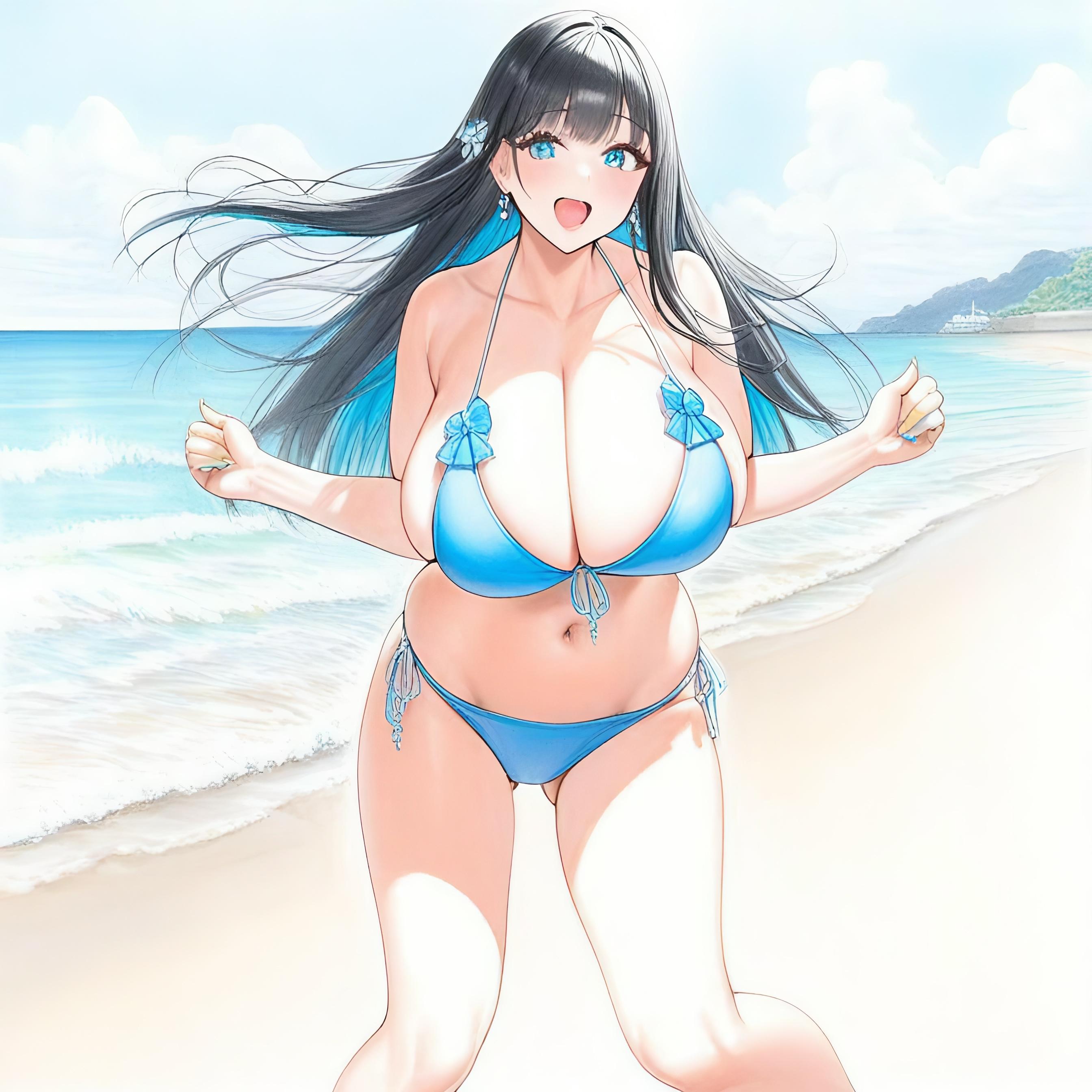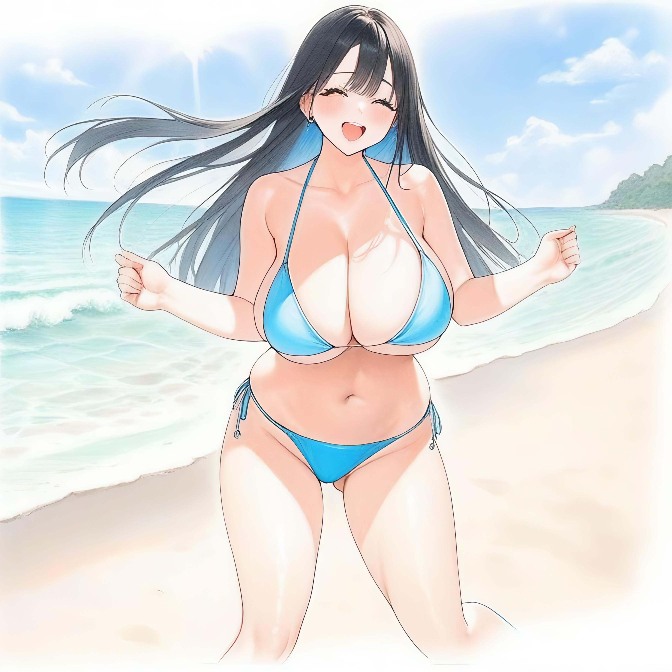 巨乳ちゃんがビキニで飛び跳ねてバウンスする様子ができてるかなあ。ぽろりを期待しちゃう揺れ方。