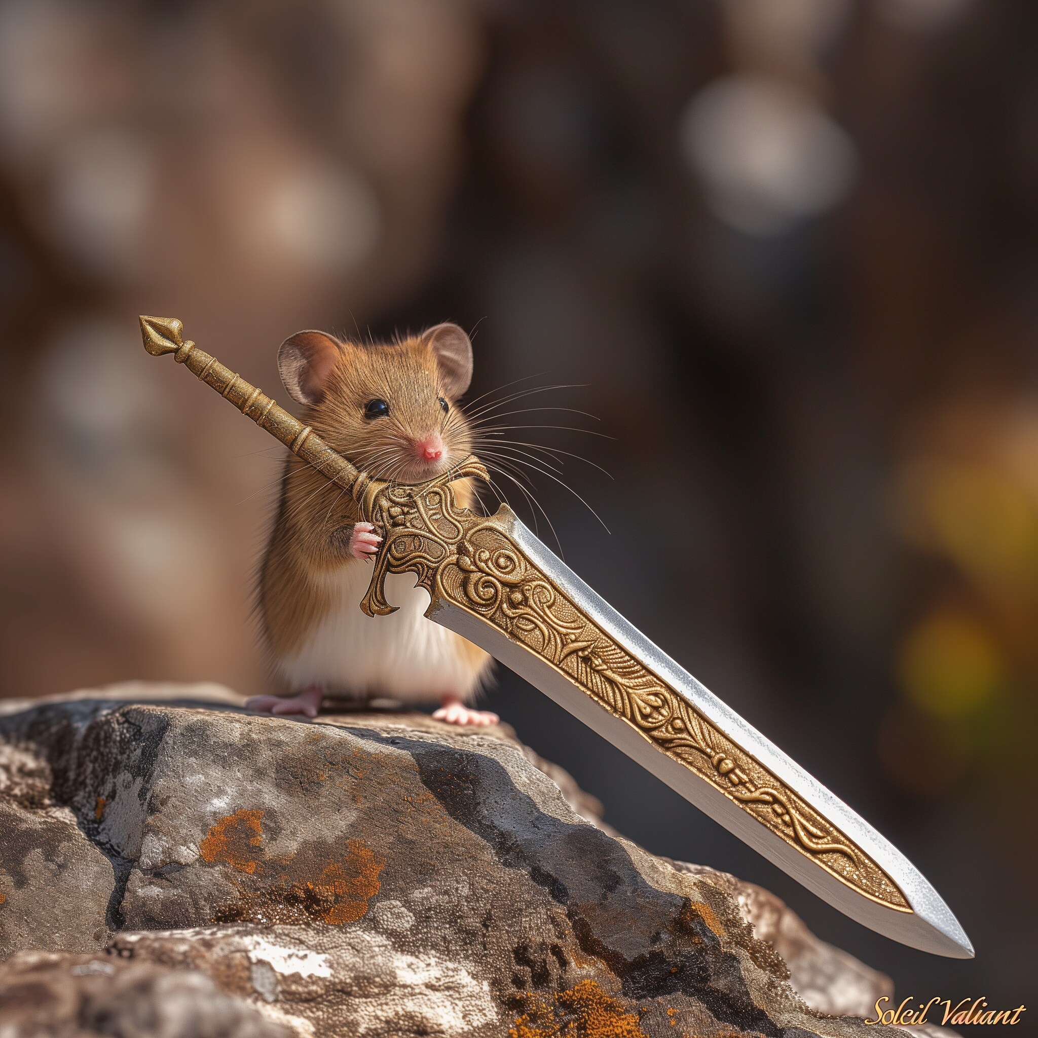 かつて天界で鍛えられたこの剣はただのネズミだった彼をその瞬間から勇者とした。