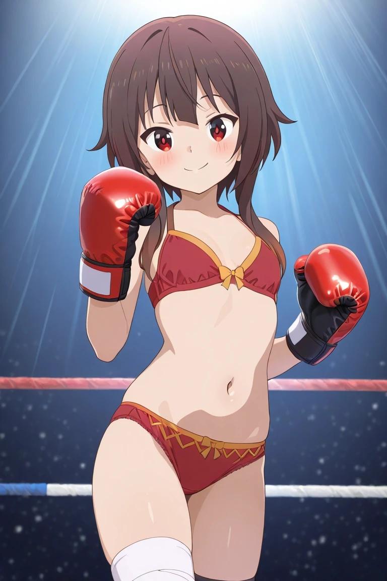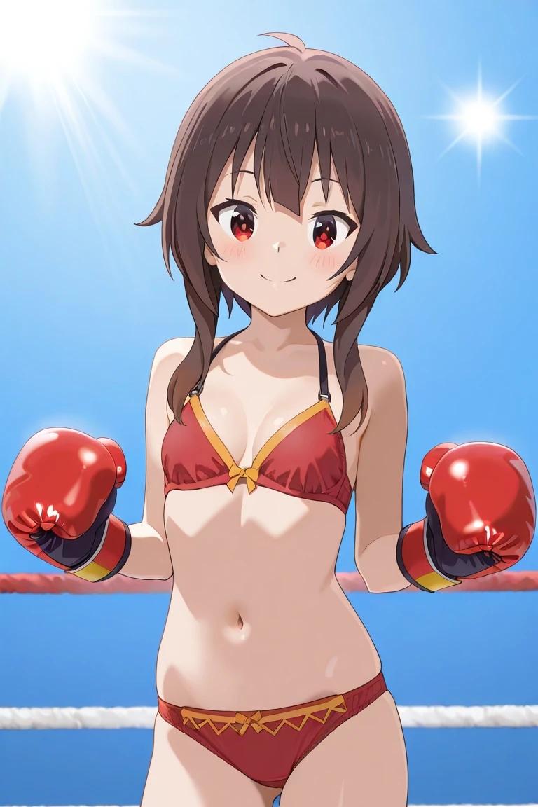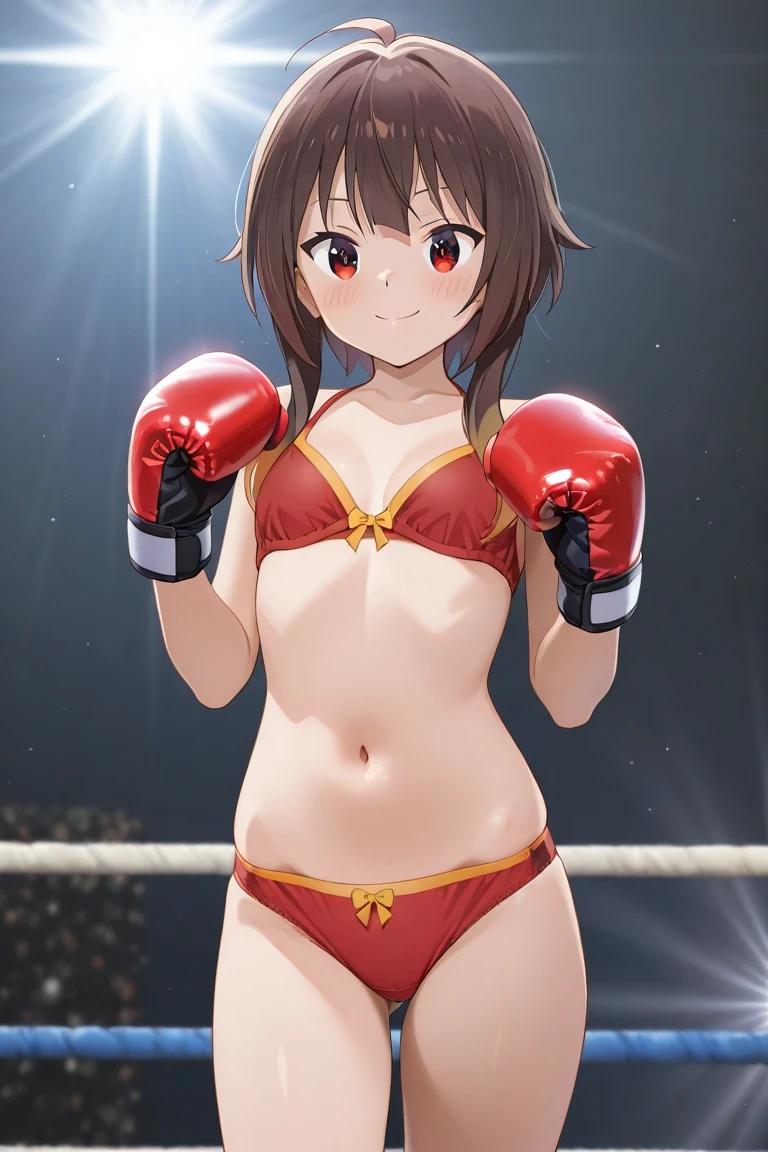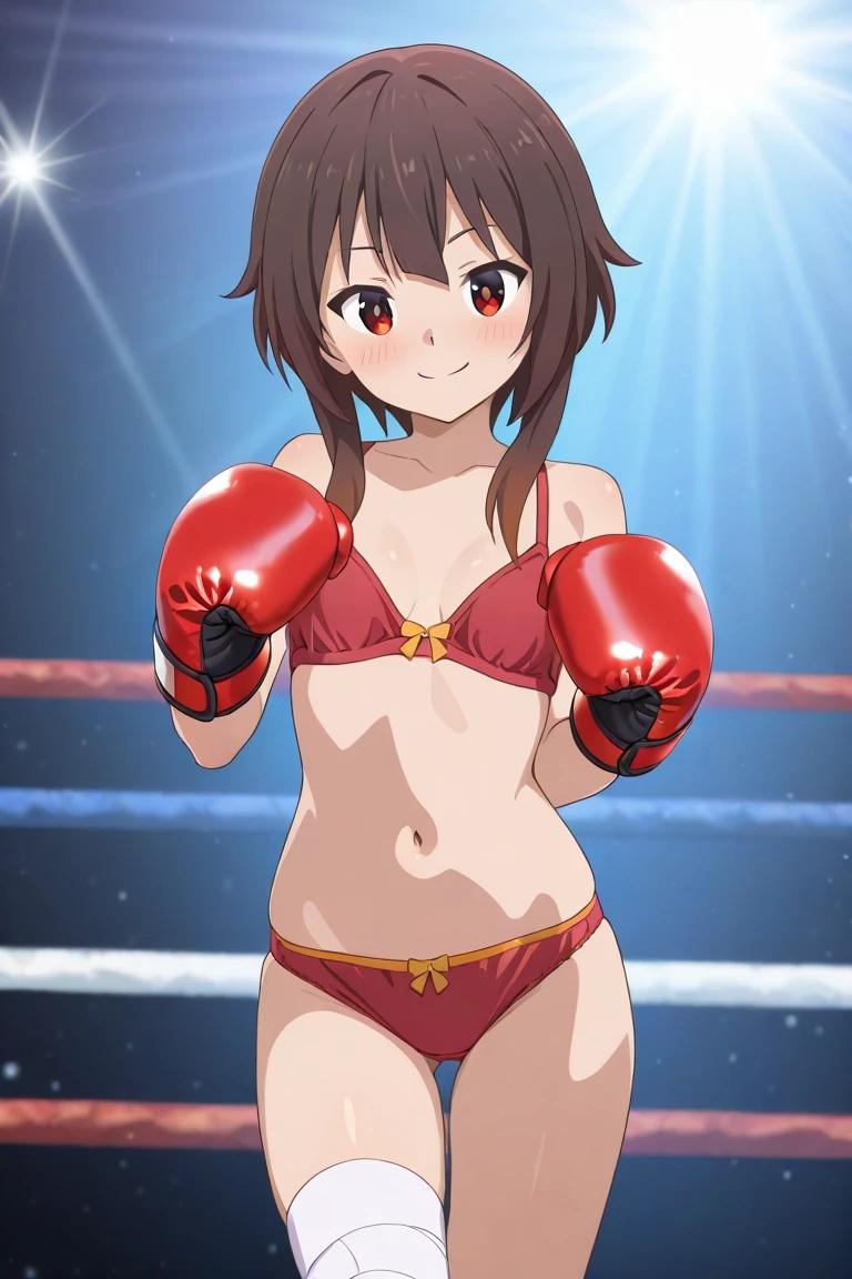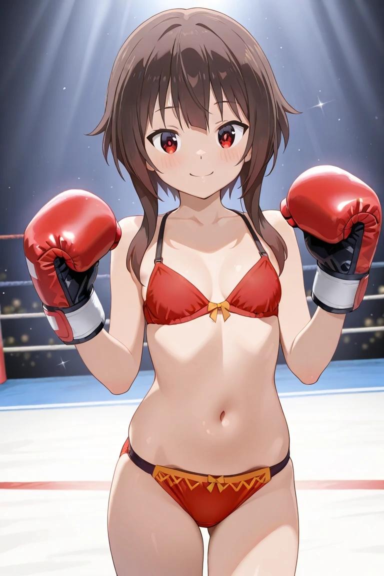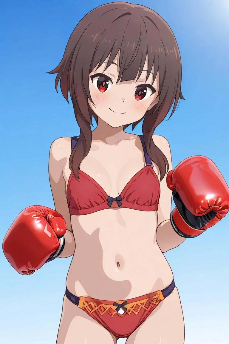 「punching」のプロンプトを加えたら、めぐみんに向かって拳が飛ぶので削除しました。