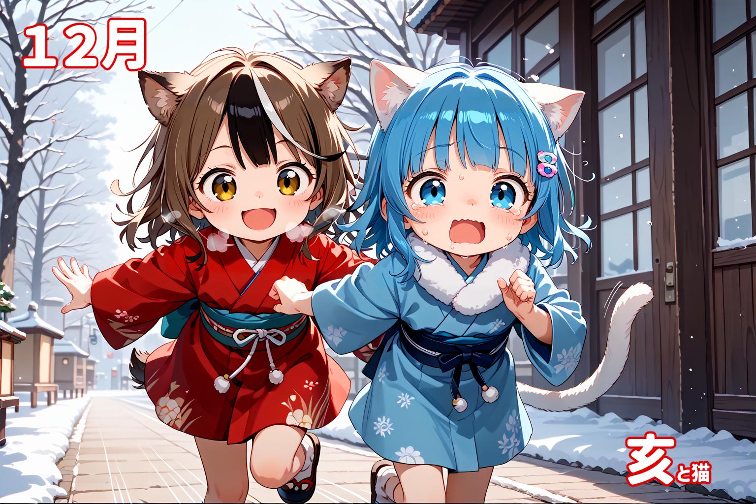 最後は1月に鼠を追いかけていた猫が逆に猪に追いかけられている図です!