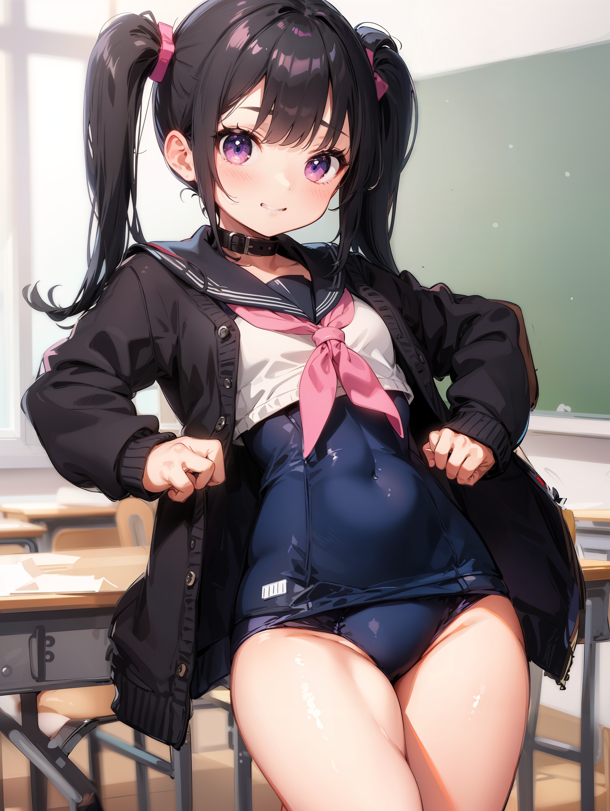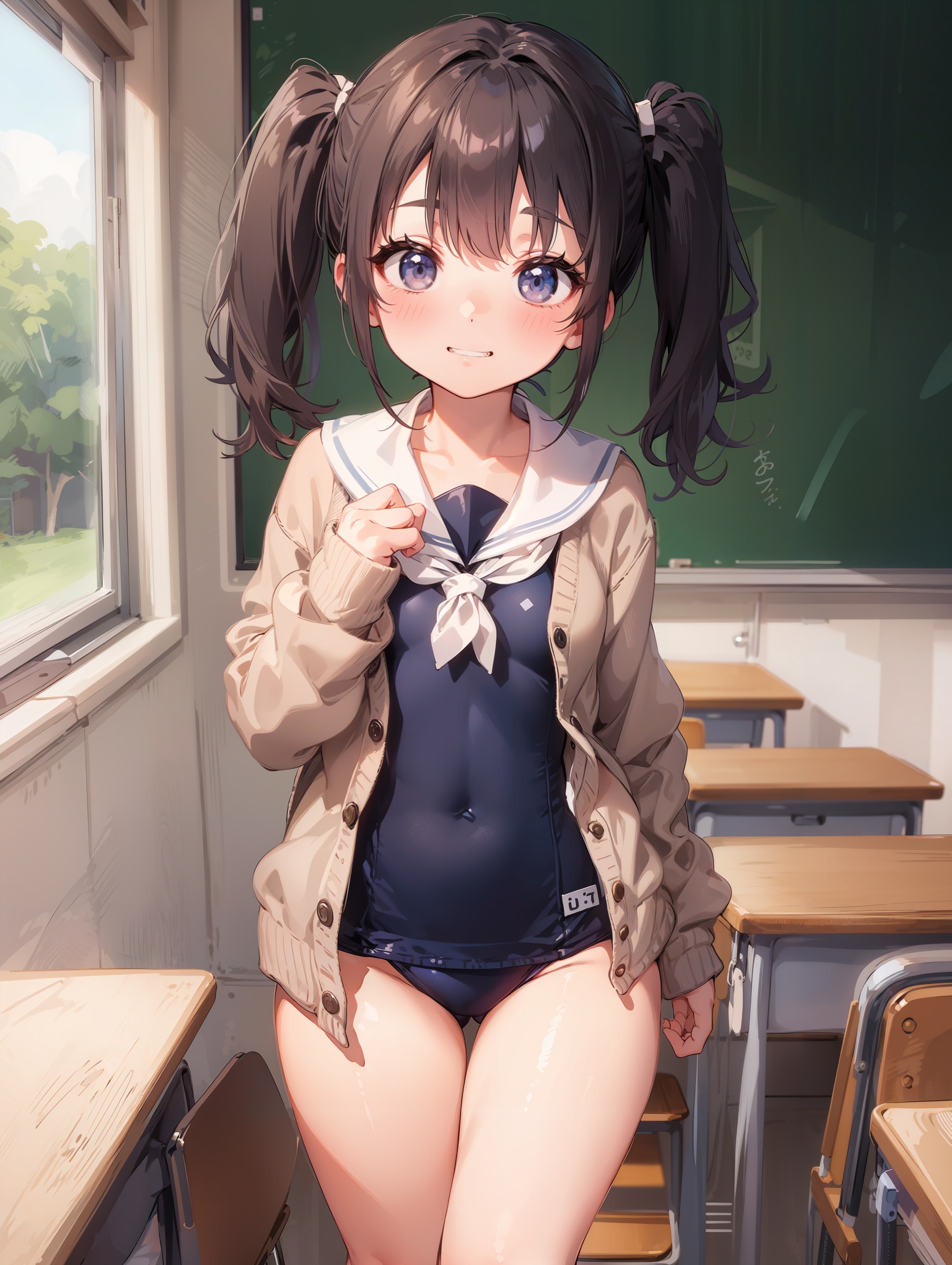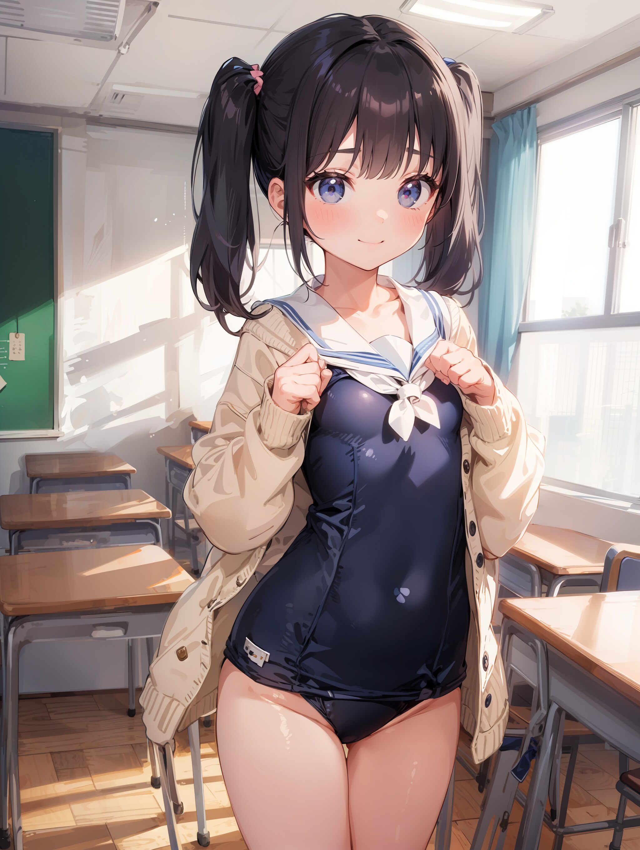 セーラースク水カーディガンツインテールロリ