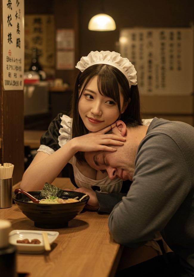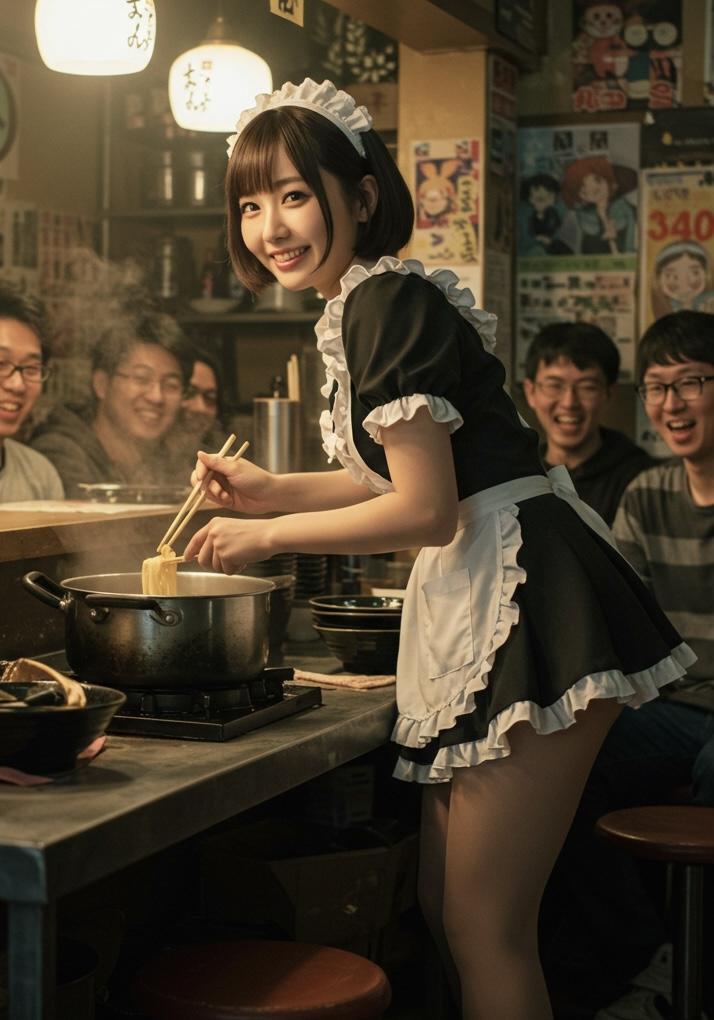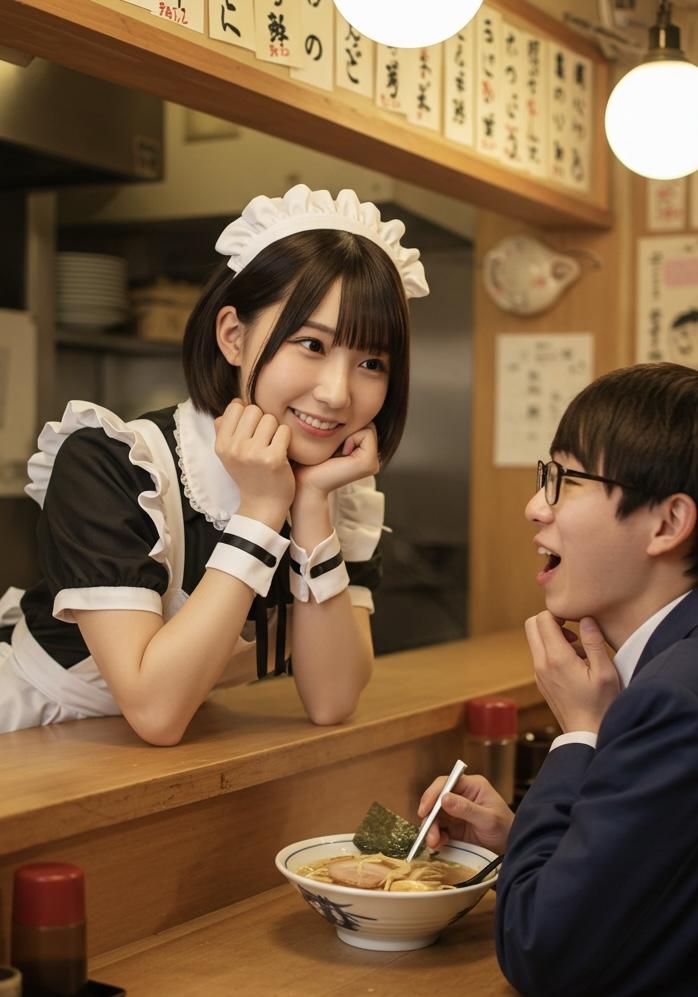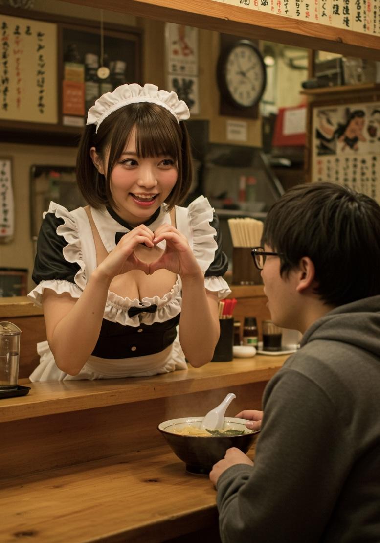 オタクくんの集まるメイド喫茶ならぬメイドラーメン屋。1杯2000円、ラブ注入付き。