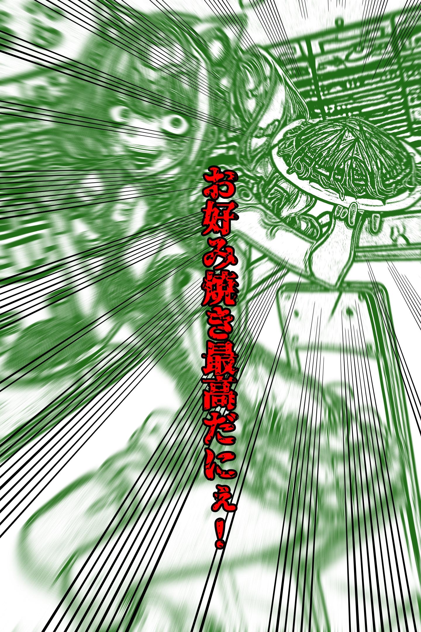 集中線が、彼らの意識を繋ぎ、お好み焼きを食べたいと感じさせるのだ。