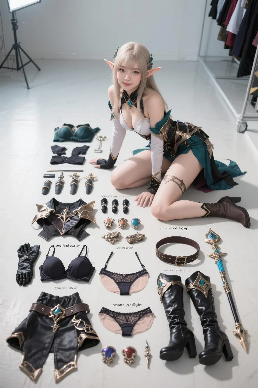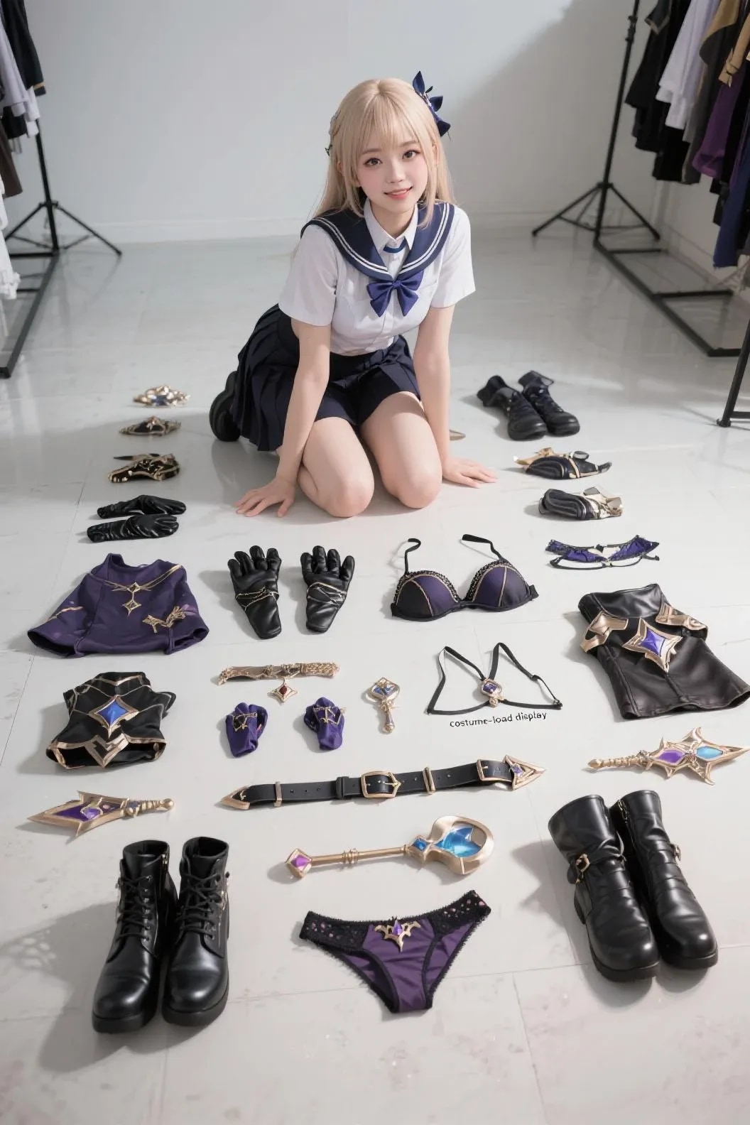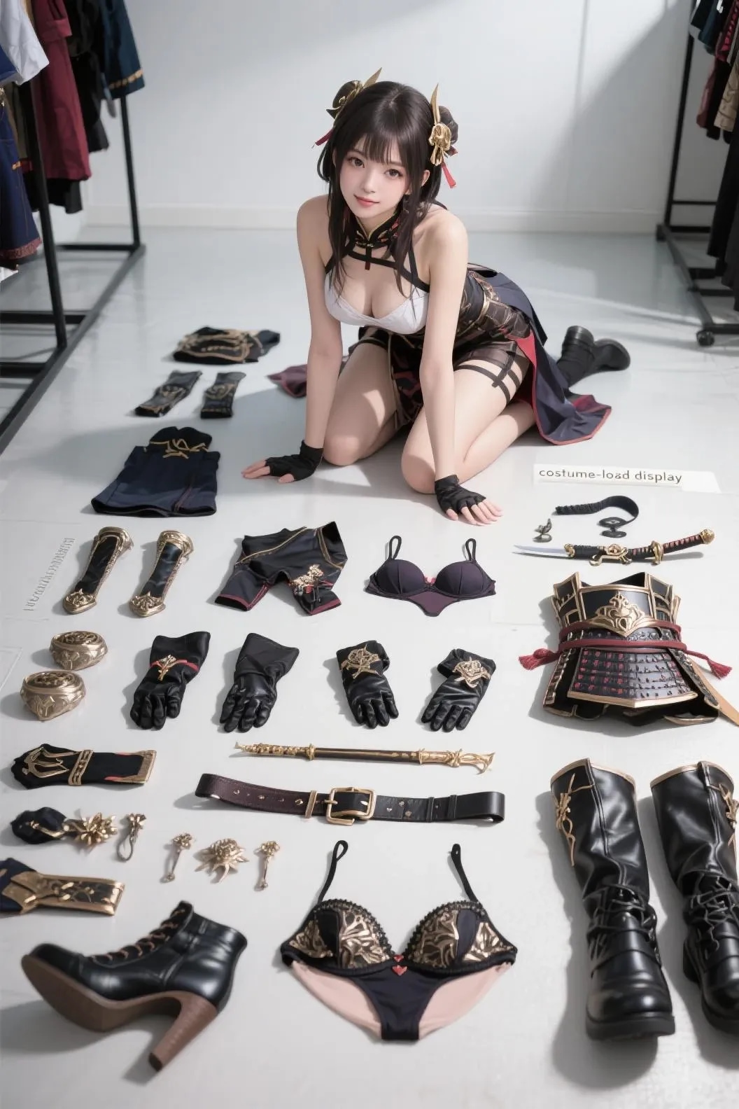 ウェポンロードディスプレイというやつのコスプレイヤー版を見かけたので、それを再現。(実際に見たやつはレイヤーが裸で土下座してましたが…)