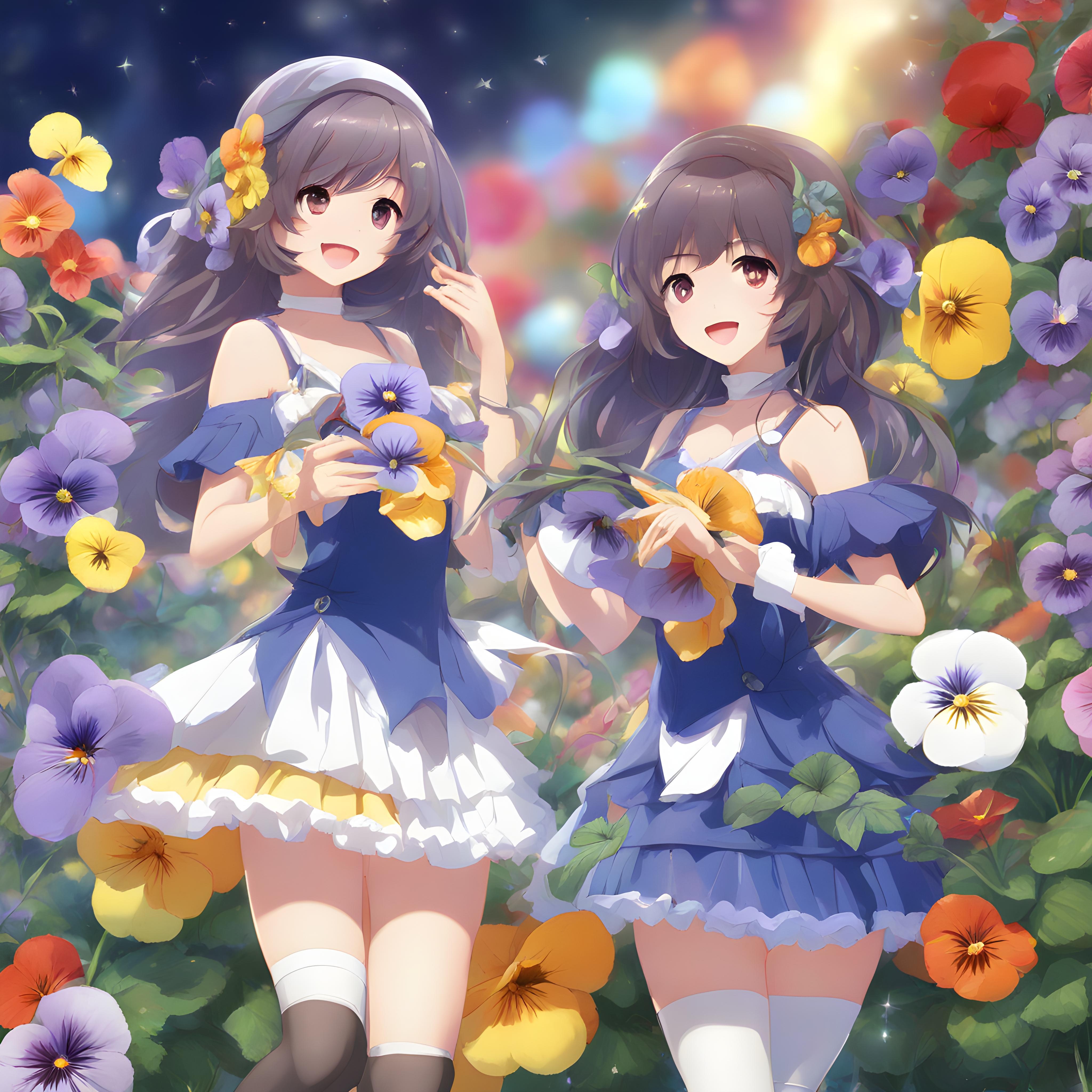 私たちはパンジー娘なの。今日の衣装はパンジーを