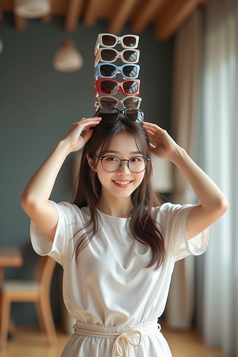 さぁ、誰が一番高くサングラスを積み上げることができるでしょうか。