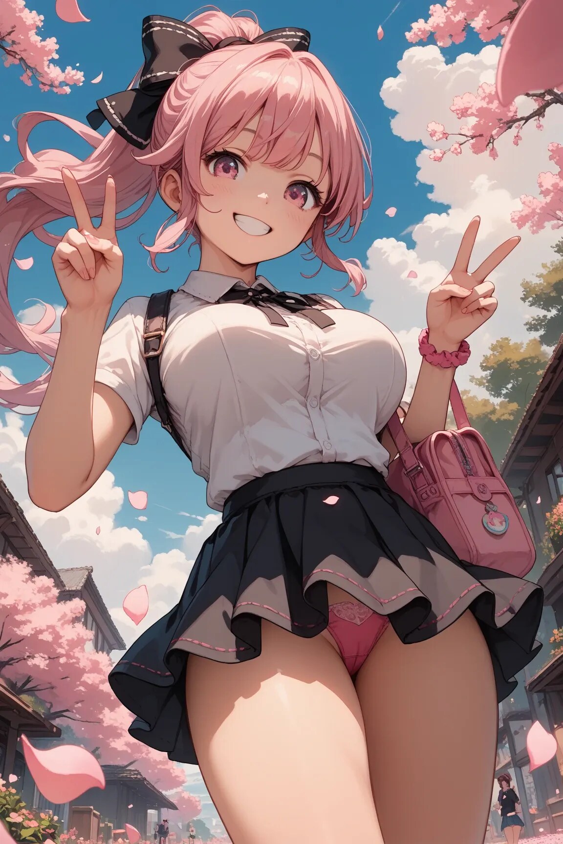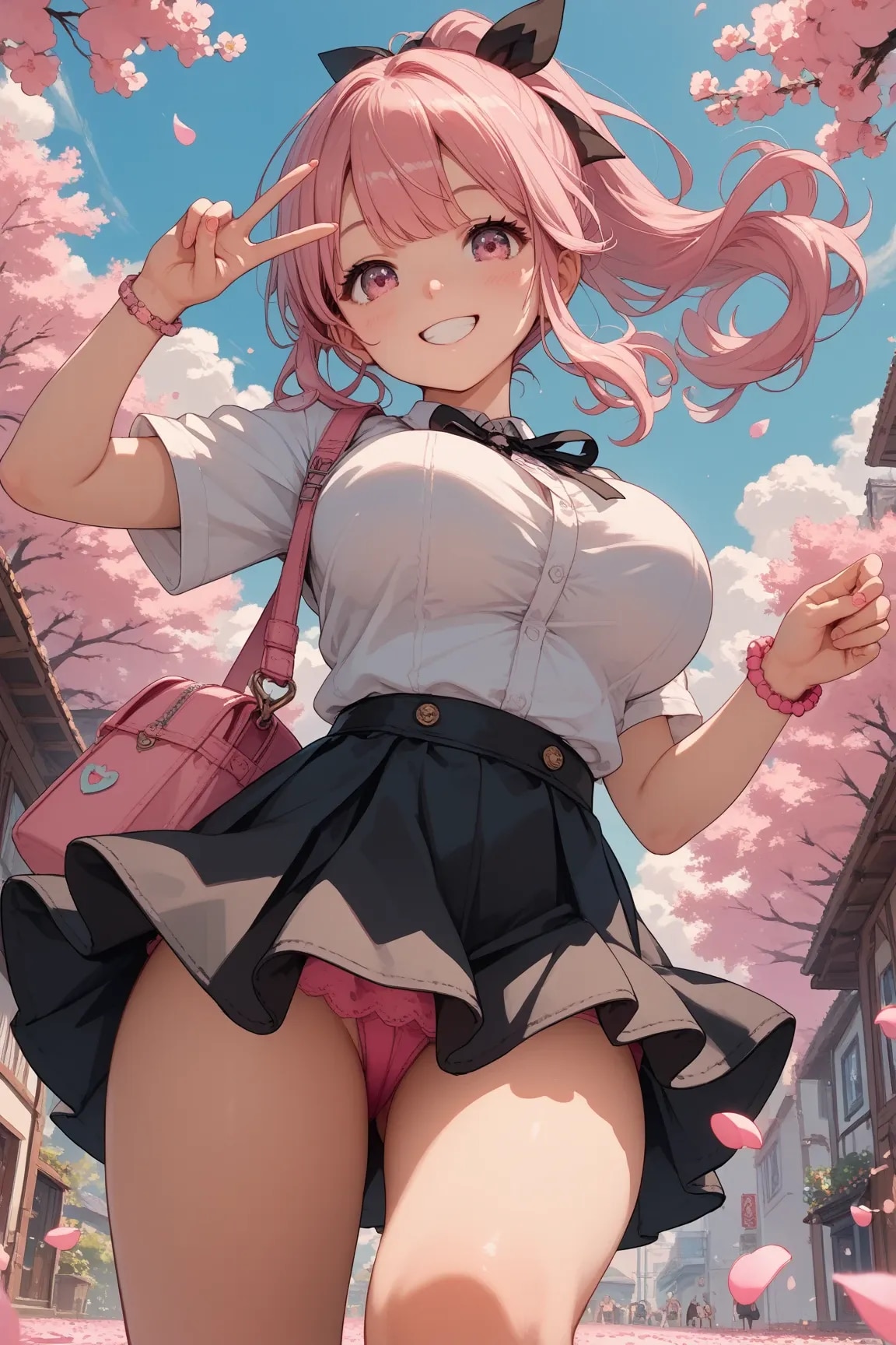 パンツを見せるピンクポニテちゃん