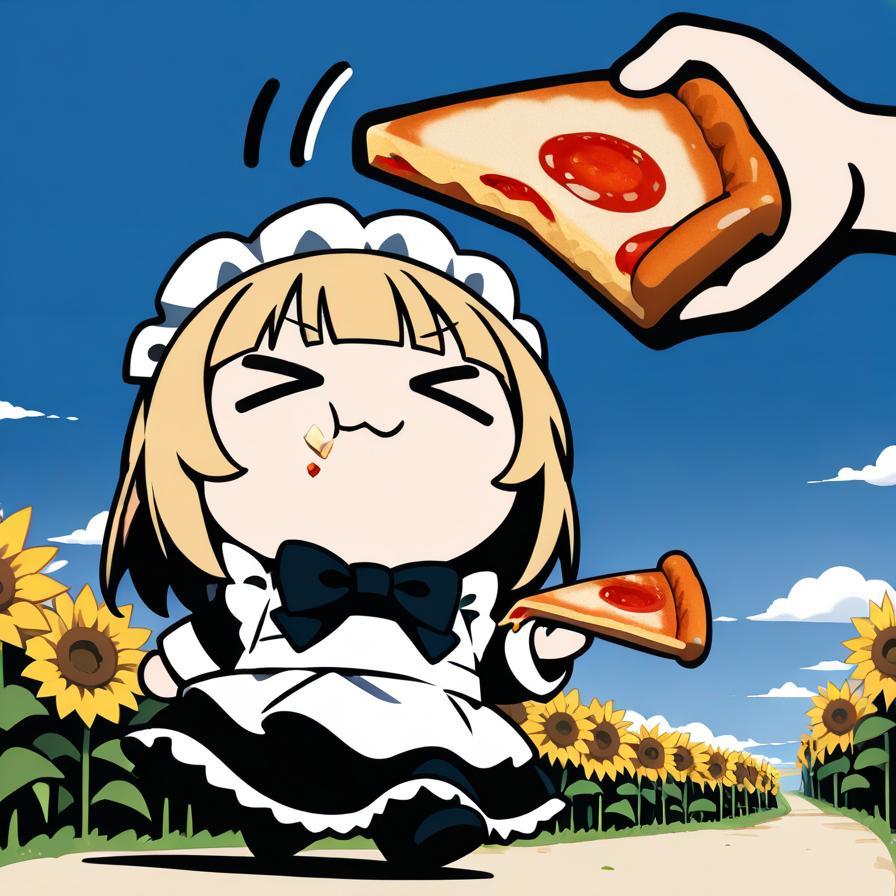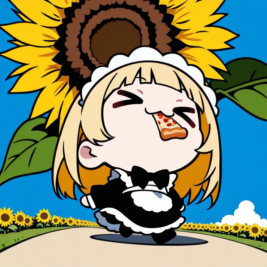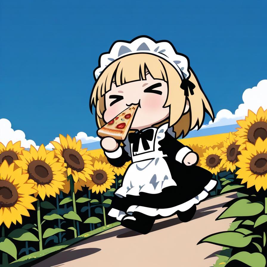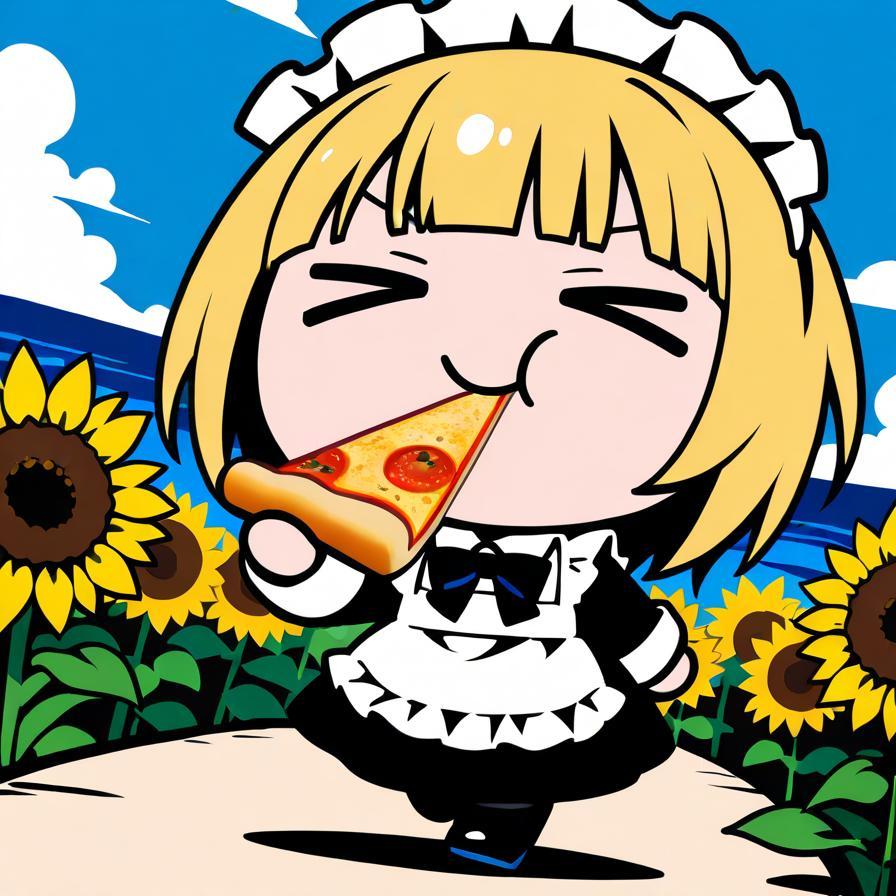 おピッツァと サンフラワーと メイドちゃん🍕🌻✨✨